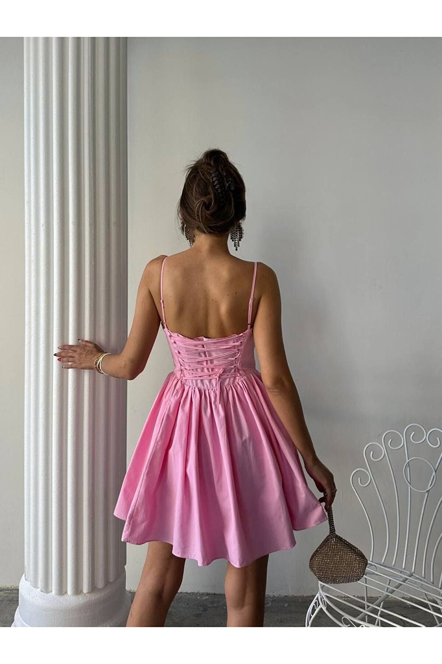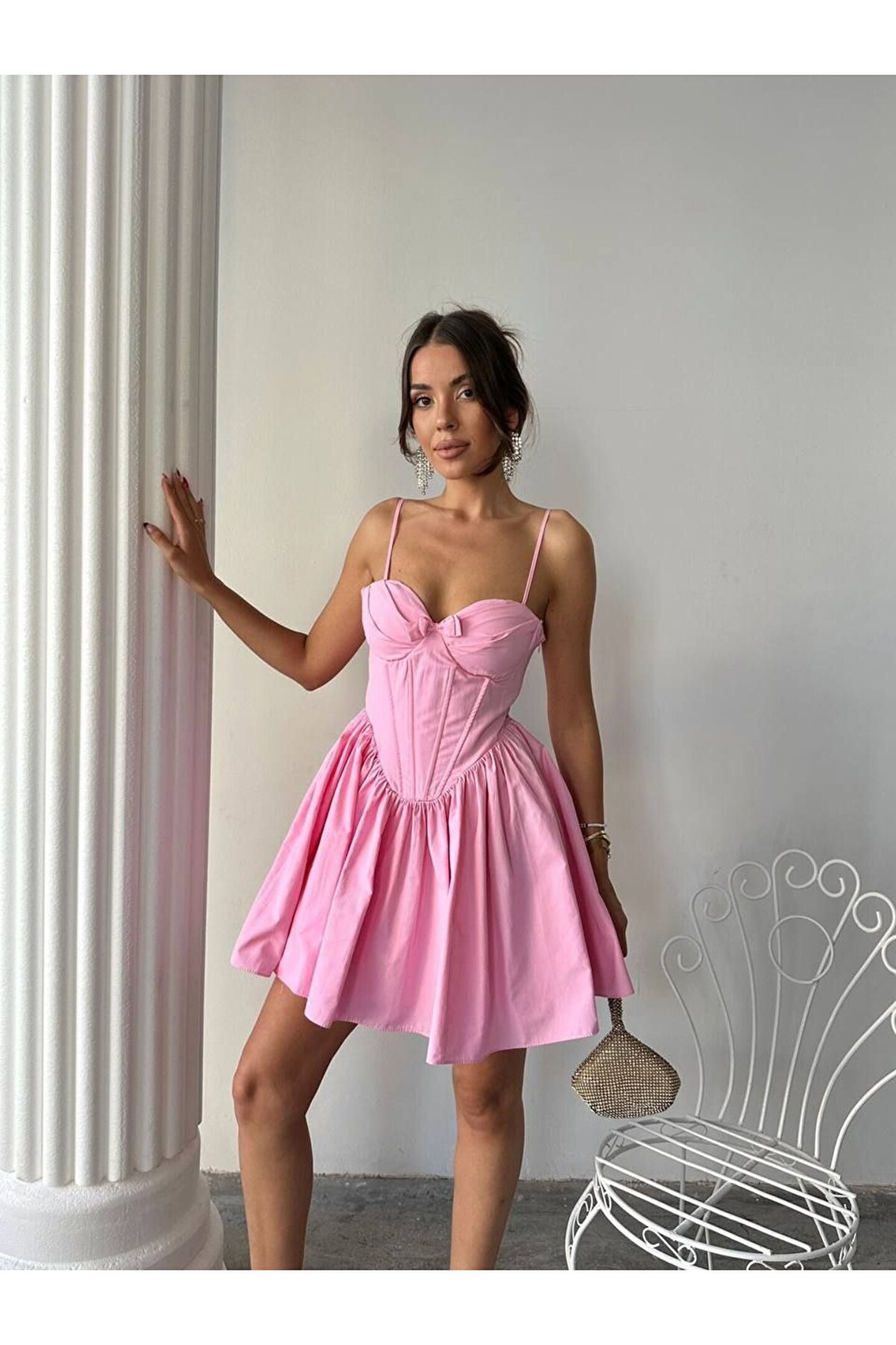 popibutik Kadın Göğüs Fiyonk Detaylı Korse Formlu Mini Elbise