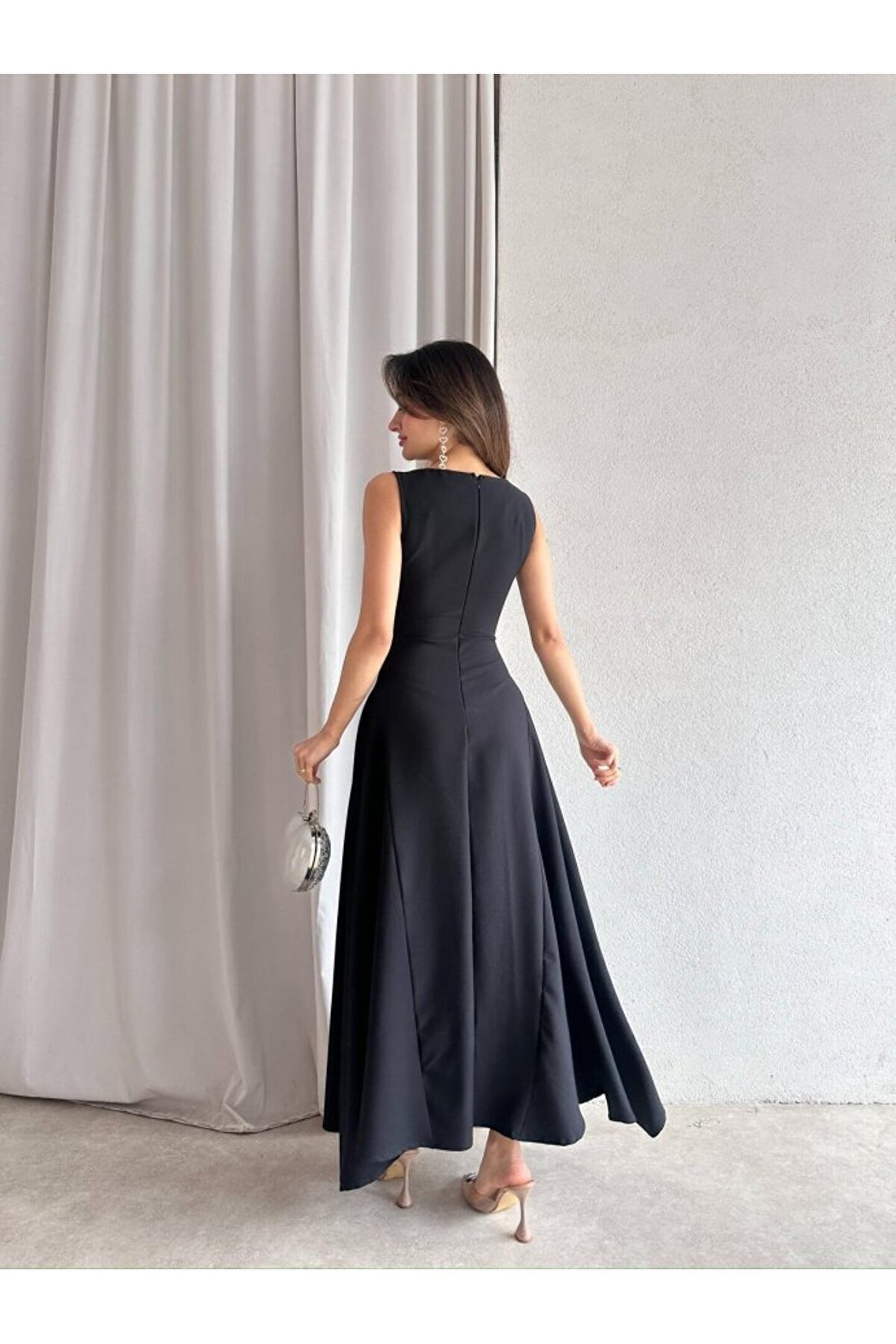 popibutik Kadın Taş Fiyonk Detaylı Uzun Elbise