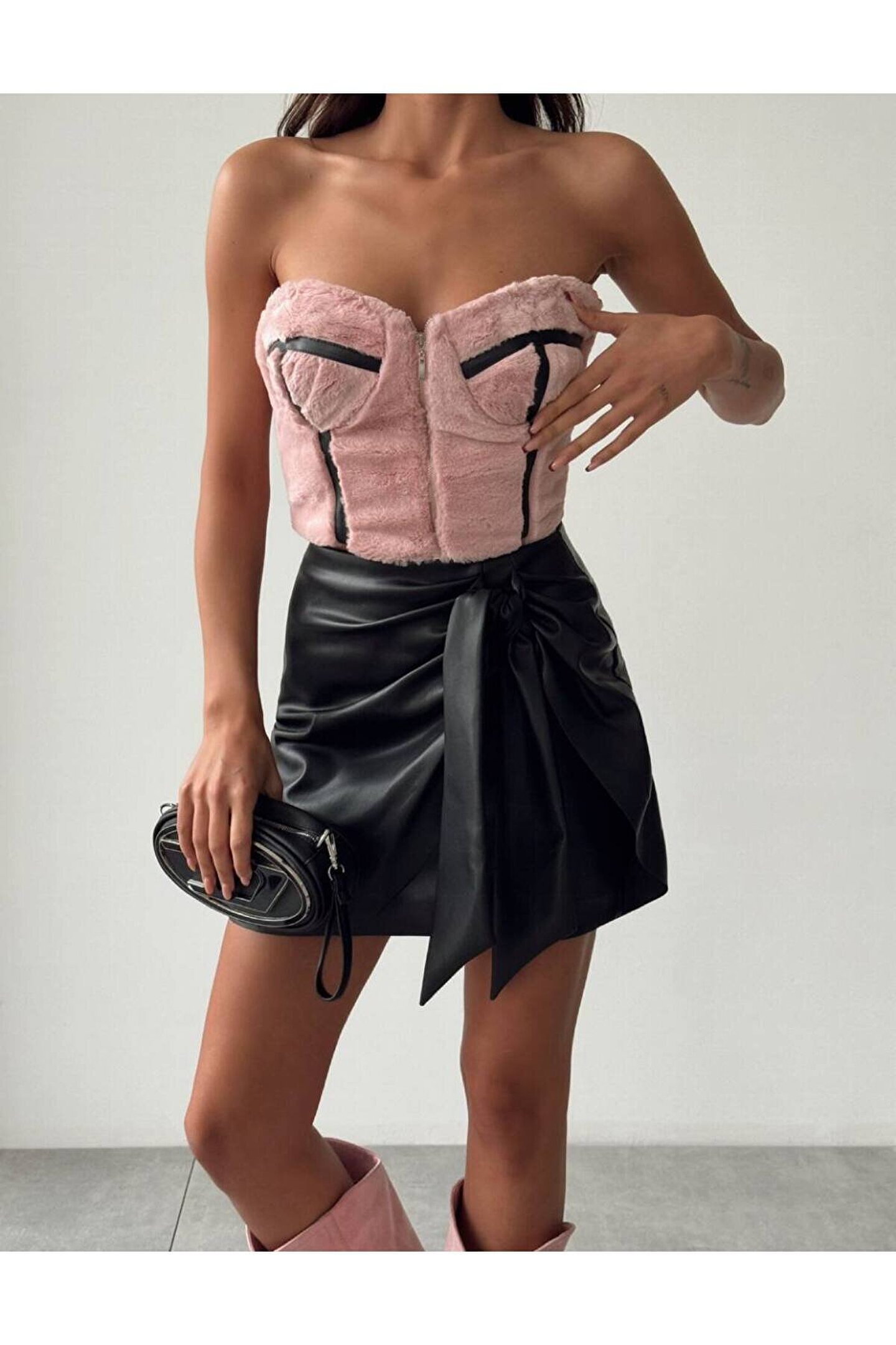 popibutik PELUŞ CROP DERİ ETEK 2 Lİ TAKIM