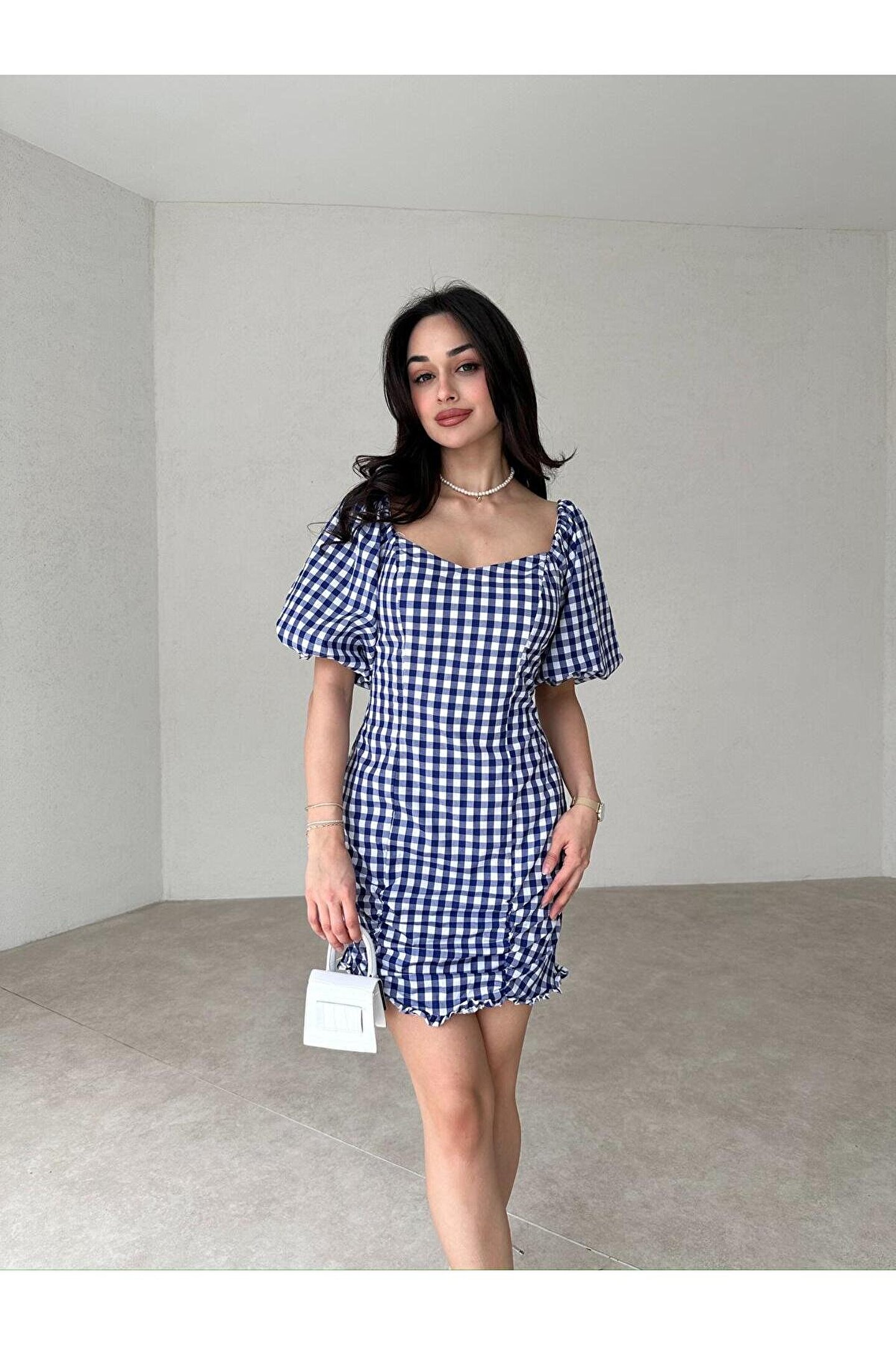 Elbise omuzdan aşağı 80 cm uzunluğundadır.; ; Elbise kumaşı esnek değildir.; ; Elbise iç göstermez.; ; Sıklıkla kullandığınız bedeni tercih edebilirsiniz.; ; Görseldeki model 170 cm 55 kg üzerindeki ürün S bedendir.; ; Modelin kendi bedeni de S bedendir.; ;