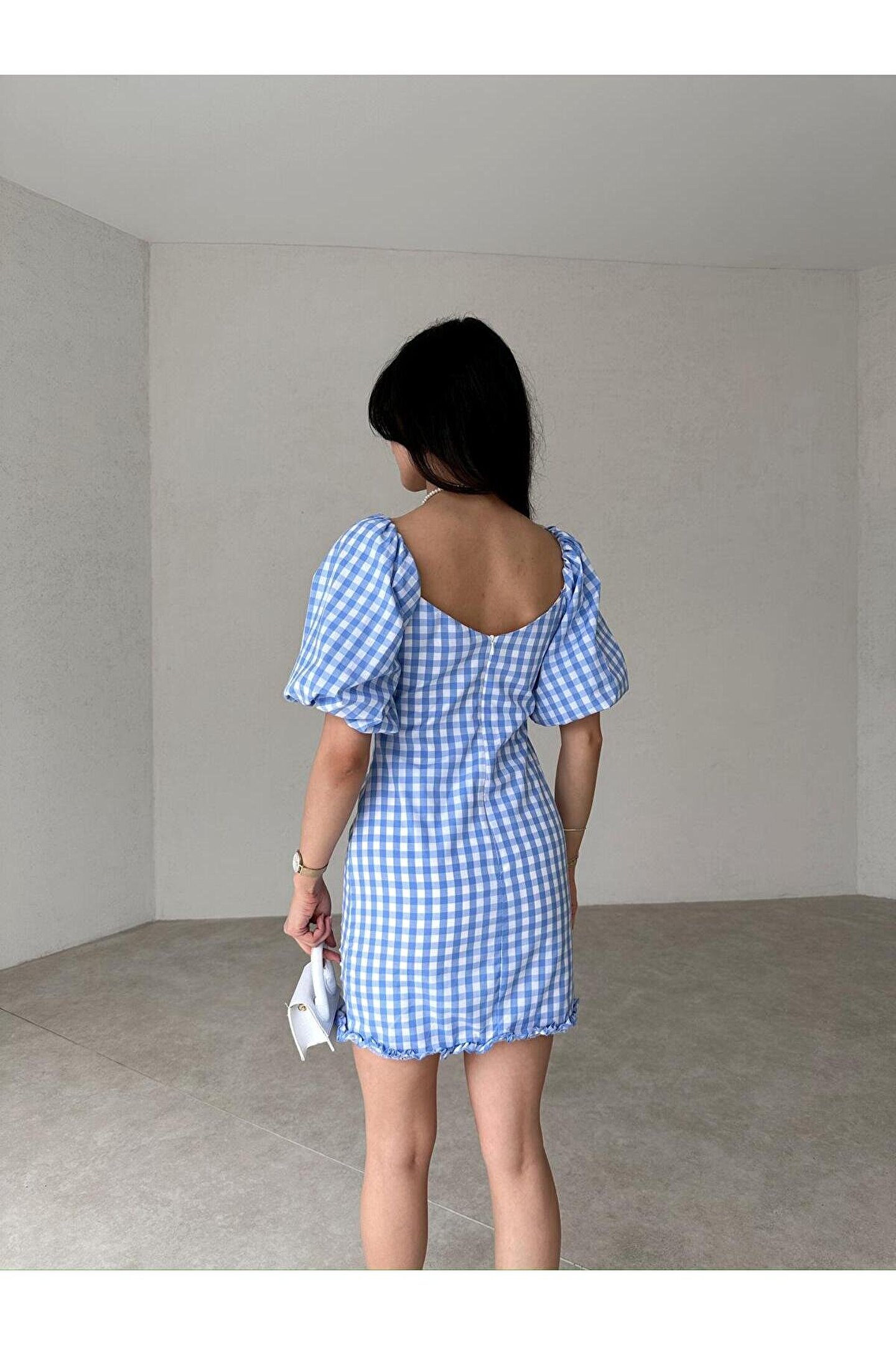 Elbise omuzdan aşağı 80 cm uzunluğundadır. ; Elbise kumaşı esnek değildir. ; Elbise iç göstermez. ; Sıklıkla kullandığınız bedeni tercih edebilirsiniz. ; Görseldeki model 170 cm 55 kg üzerindeki ürün S bedendir. ; Modelin kendi bedeni de S bedendir. ;
