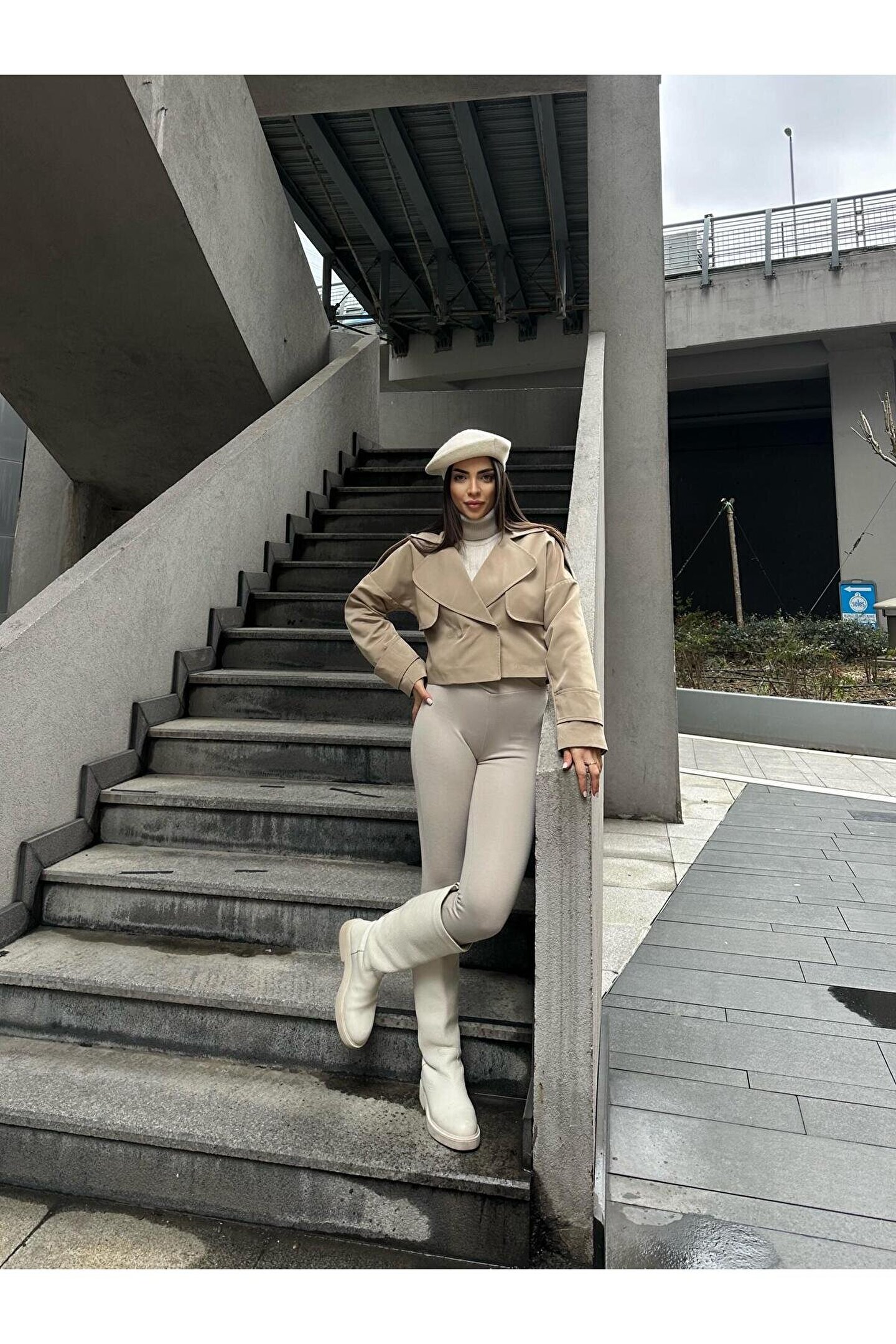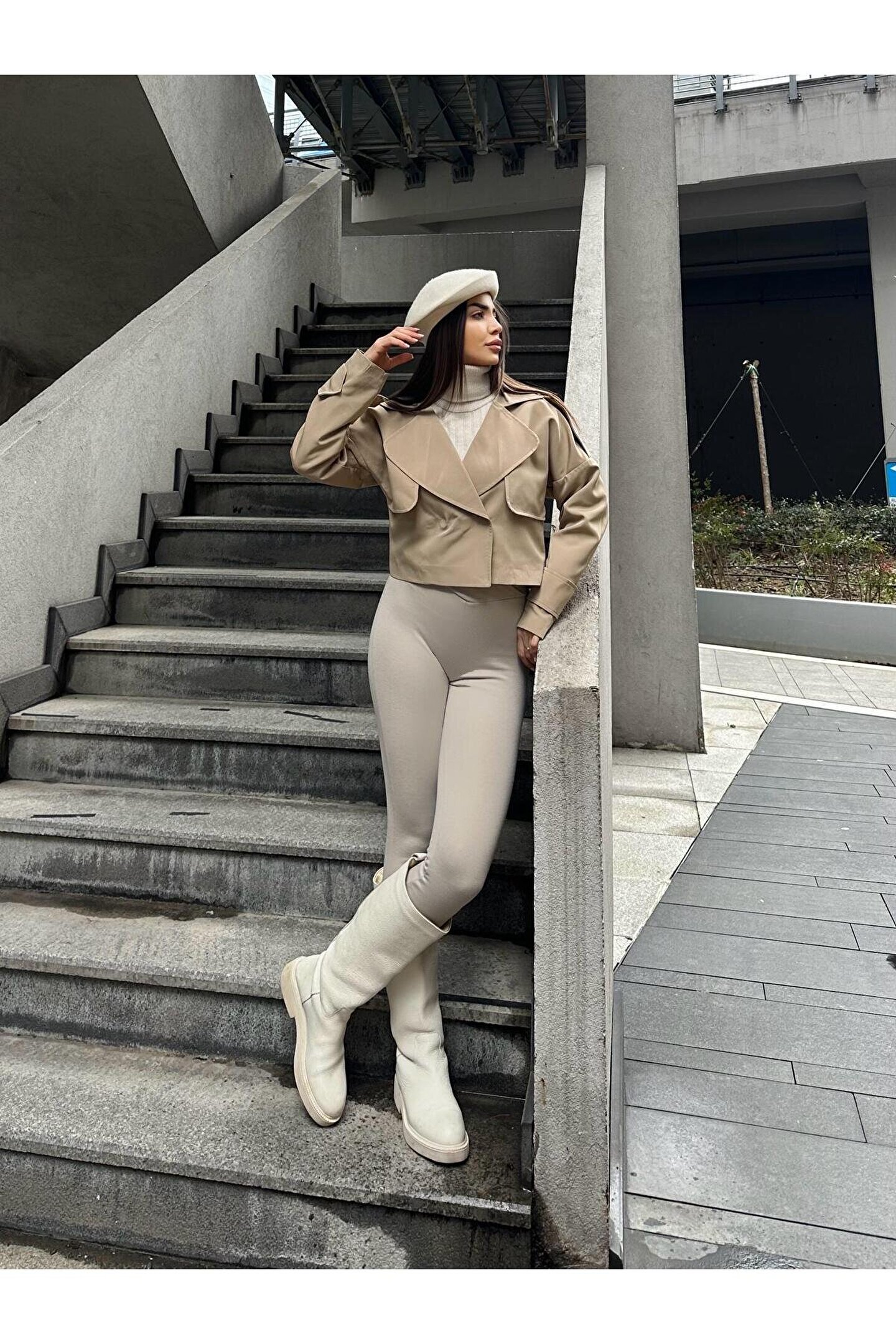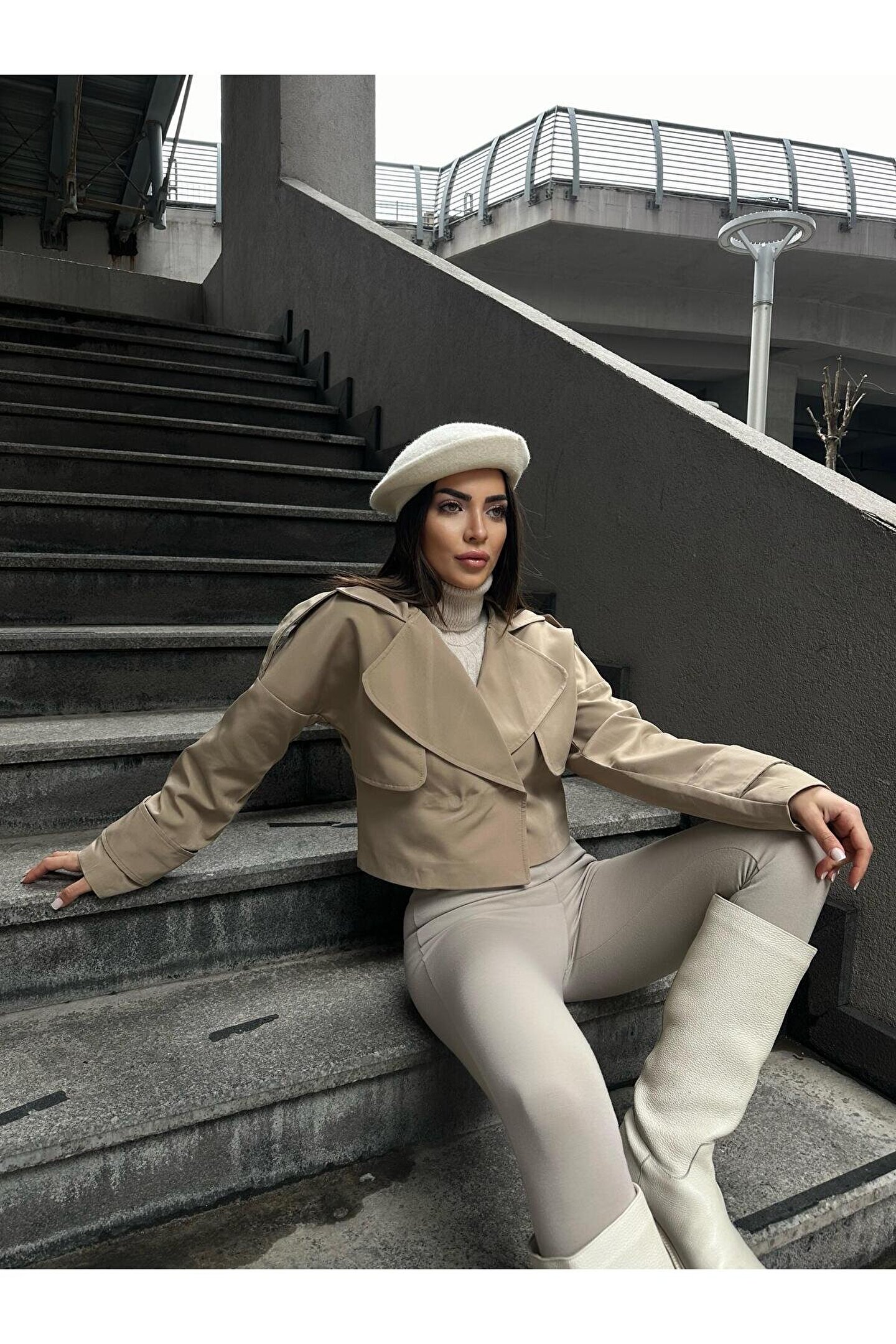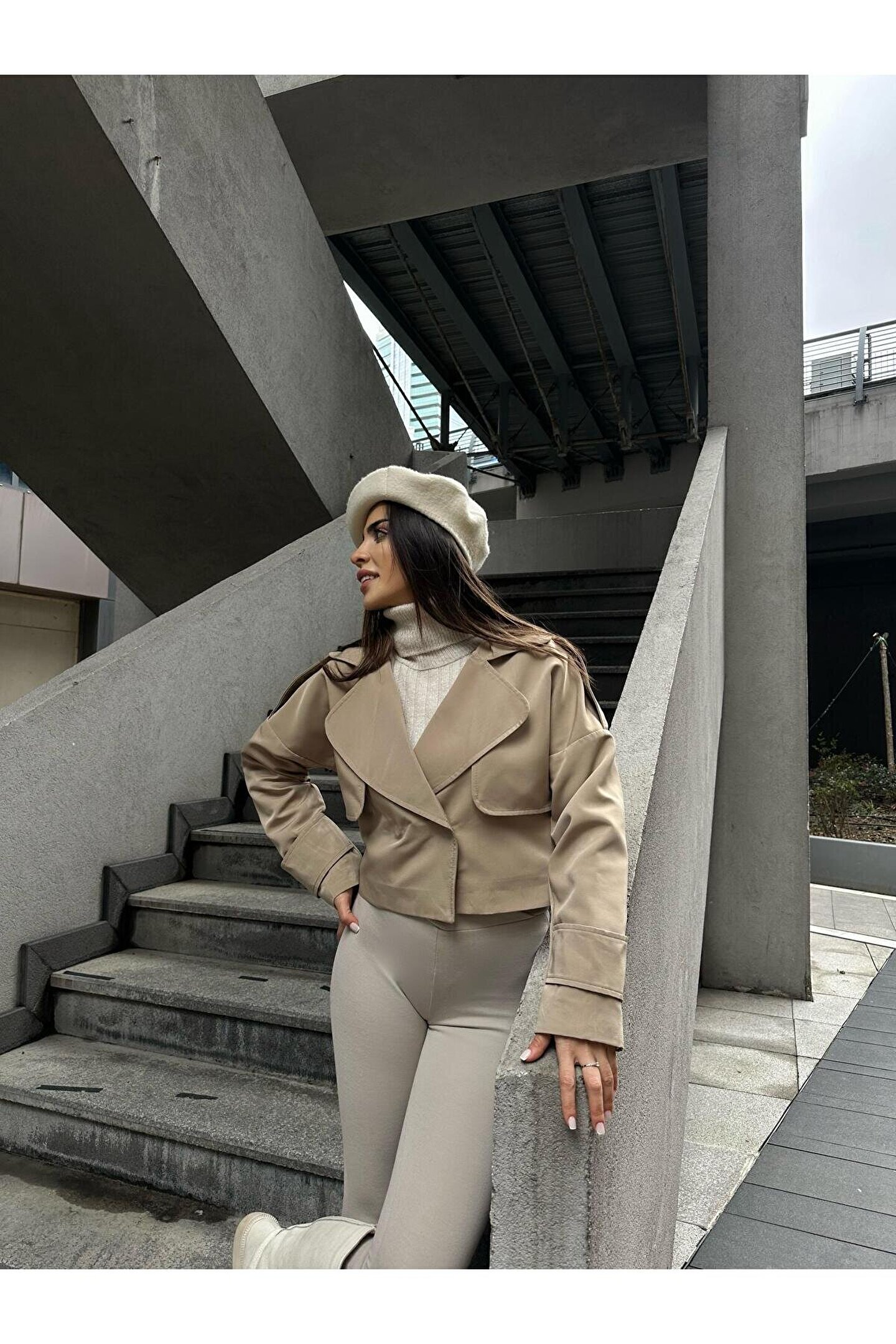 popibutik Trenc Kumaş Astarlı Crop Vizon Ceket