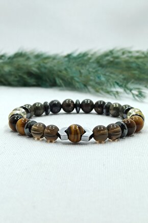 Dumanlı kuvars pirit karma doğal taş erkek bileklik kaplan gözü taşı astım hastaları için faydası olduğuna inanılan bir taştır. ; Kişinin karar vermesine yardımcı olur. ; Kişinin algı gücünü arttırır. ; Hafızayı kuvvetlendirir. ; Inatçılığı azaltır ve duygusal bakımdan dengeleyici bir taştır. ; Sahiplenme duygusunu güçlendirir. ; Para kazanmak için gerekli el becerilerini arttırır. ; Hayatlarında değişiklik yapmayı düşünenlerin tercih etmesi gereken taş kaplan gözü taşıdır. ; Beynin sağ ve sol loblarının dengeli çalışmasını sağlar. ; Kanı toksinlerden temizlediği bilinmektedir. ; Sindirim sistemini düzenleyici bir etkisi vardır. ; Kemik kırıklarının kaynamasına yardım eder dumanlı kuvras: Iyileştirici taşlar arasında yer alır. ; Sinir sistemini güçlendirir. ; Kişiye sakinlik verir. ; Kolay iletişim kurmanıza yardımcı olur. ; Odaklanmaya yardımcı olur. ; Tiroid bezini korur ve iyileştirici özelliği vardır. ; Radyasyona karşı koruyucudur. ; Sinirsel gerginliğe ve panik atak hastalığına iyi gelir. ; Sitrin taşı: Zihni berraklaştırır. ; Üzerinde taşıyan kişiye mutluluk ve neşe duyguları verir. ; Sitrin taşı bolluk ve bereketi kendisine çeker. ; Başarı getirdiğine inanılır. ; Sanatçılar tarafından tercih edilen bir taştır,yaratıcılığı artırdığına inanılır. ; Kişinin kendisini ifade etmesini kolaylaştırır. ; Bağışıklık sistemini güçlendirir. ; Anti oksidan etkilidir. ; Böbrek, kolon sindirim organları, ciğerler ve kalp için faydalı bir taştır. ; Bilekliklerimiz ortalama 17-18 cm ebatındadır pirit taşı: Kişiye canlılık ve yaşama sevinci verir. ; Kişideki idare gücünü arttırıcı etkilere sahiptir. ; Bu özelliğinden dolayı genellikle yönetici konumundaki kişiler tarafından tercih edilir. ; Negatif enerjiye karşı mükemmel bir kalkandır. ; Yetersizlik duygusunu yenmeye yardım eder. ; Kronik yorgunluk gidermeye yardımcıdır. ; Kişinin uyumlu ve sosyal olmasına yardımcı olur. ; Dikkat dağınıklığına iyi gelir. ; Zihni belirsiz düşüncelerden arındırır. ; Hafızaya iyi gelir. ; Öğrenmeyi kolaylaştırır, özgüveni arttırır rodonit taşı: Ruhsal enerjiye sahiptir. ; Uyum ve huzur verir. ; Sorunlarla başa çıkmanıza yardımcı olur. ; Günlük yaşamda başarılı olmaya yardımcı olur. ; Ruhsal,zihinsel ve fiziksel canlılığınızı arttırır. ; Sınav öncesi stresi ortadan kaldırır.Zihin açıklığı verir. ; Öğrenme yeteneğini arttırır. ; Korkuyu azaltmaya yardımcı olur. ; Neşe,keyif,memnuniyet,aşk ve sevgi sembolüdür,kullananın bu özellikleri kazanmasına yardım eder. ; Boğaz ve gırtlak iltihaplarının tedavisine yardım eder. ; Anksiyete ve depresyon tedavisinde destek amaçlı kullanılmaktadır. ; Hematit taşı kişinin kendisine güven duymasına ve kontrol etmesine yardımcıdır. ; Birey ve toplum arasındaki ilişkilerde denge görevi görür. ; Olumsuz enerjiyi gidermeye yardımcıdır. ; Ilişkiler üzerinde olumlu etkisi vardır tüm çakraları dengeler. ; Uykusuzluğa iyi gelir. ; Kan dolaşım sistemini düzenler, kalbi sağlıklı tutar, kan basıncını dengeler. ; Mafsal romatizması ağrılarını hafifletir. ; Harap olmuş, hasar görmüş dokuların yeniden oluşmasına yardım eder. ; Iskelet sistemi hastalıklarına iyi gelir.;