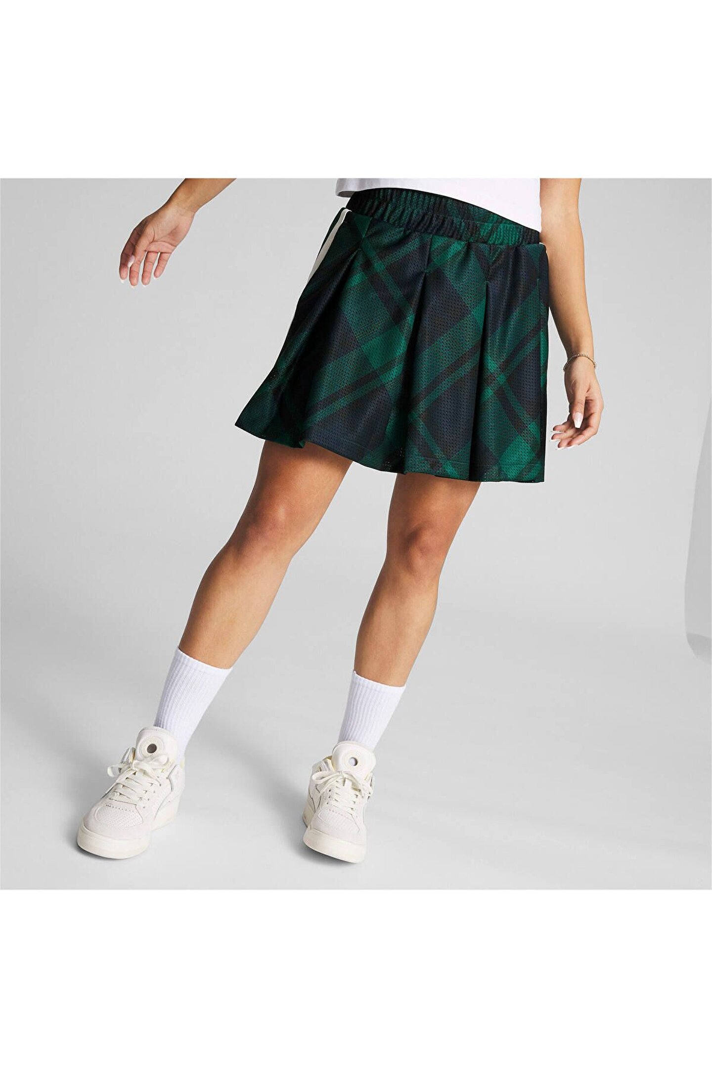 623242_01-ÜRÜN HİKAYESİ PUMA x TROPHY HUNTING koleksiyonu, klasik Amerikan stilinin PUMA'nın çağdaş spor giyimiyle birleştirerek zanaate ve işlevselliğe vurgu yapan ve kadın basketbolunu hem sahada hem de saha dışında destekleyen zamana meydan okuyan giysiler sunuyor.; ÖZELLİKLER & FAYDALAR Daha iyi bir geleceğe doğru bir adım olarak süslemeler hariç %100 geri dönüştürülmüş malzemeden üretilmiştir DETAYLAR Standart kesim Yüksek bel Ayarlanabilirlik ve rahatlık için bel bandında kordonlar Trophy Hunting markası
