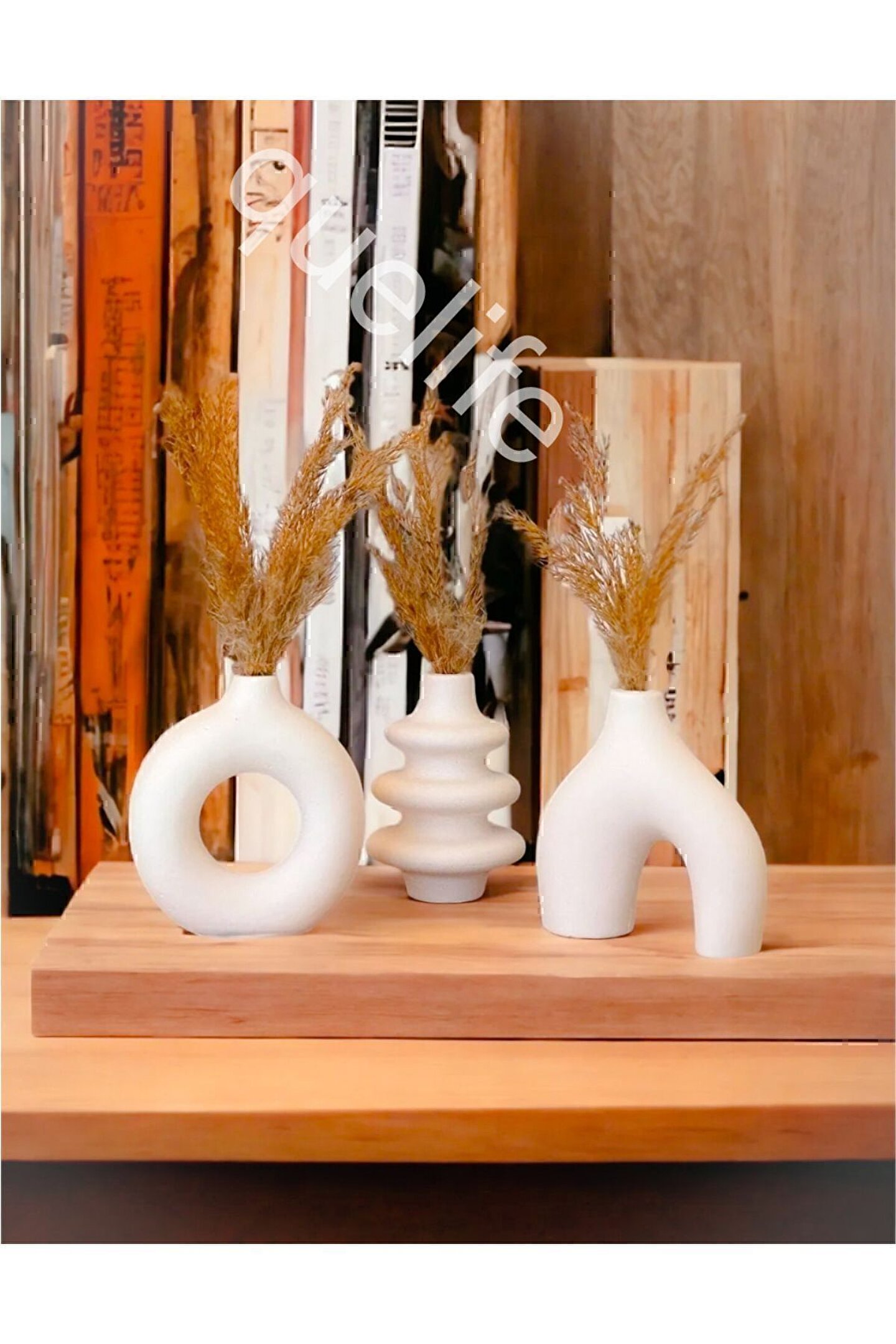 - Zarif beyaz renkteki bu vazo seti, minimalist dekorasyon anlayışınıza mükemmel uyum sağlar.; - 0 ile 10 cm arasında değişen yüksekliğiyle, her türlü alanda kolayca yer bulur ve kullanım alanı sunar.; - Beton materyali sayesinde dayanıklılığı artırılmış olup uzun süreli kullanım vaat eder.; - Üç parçadan oluşan set, evinizde veya ofisinizde estetik bir görünüm oluşturmanız için idealdir.; - Tek ebat tasarımıyla standart boyutlarda olan bu vazo seti, farklı alanlara kolayca adapte olabilir.