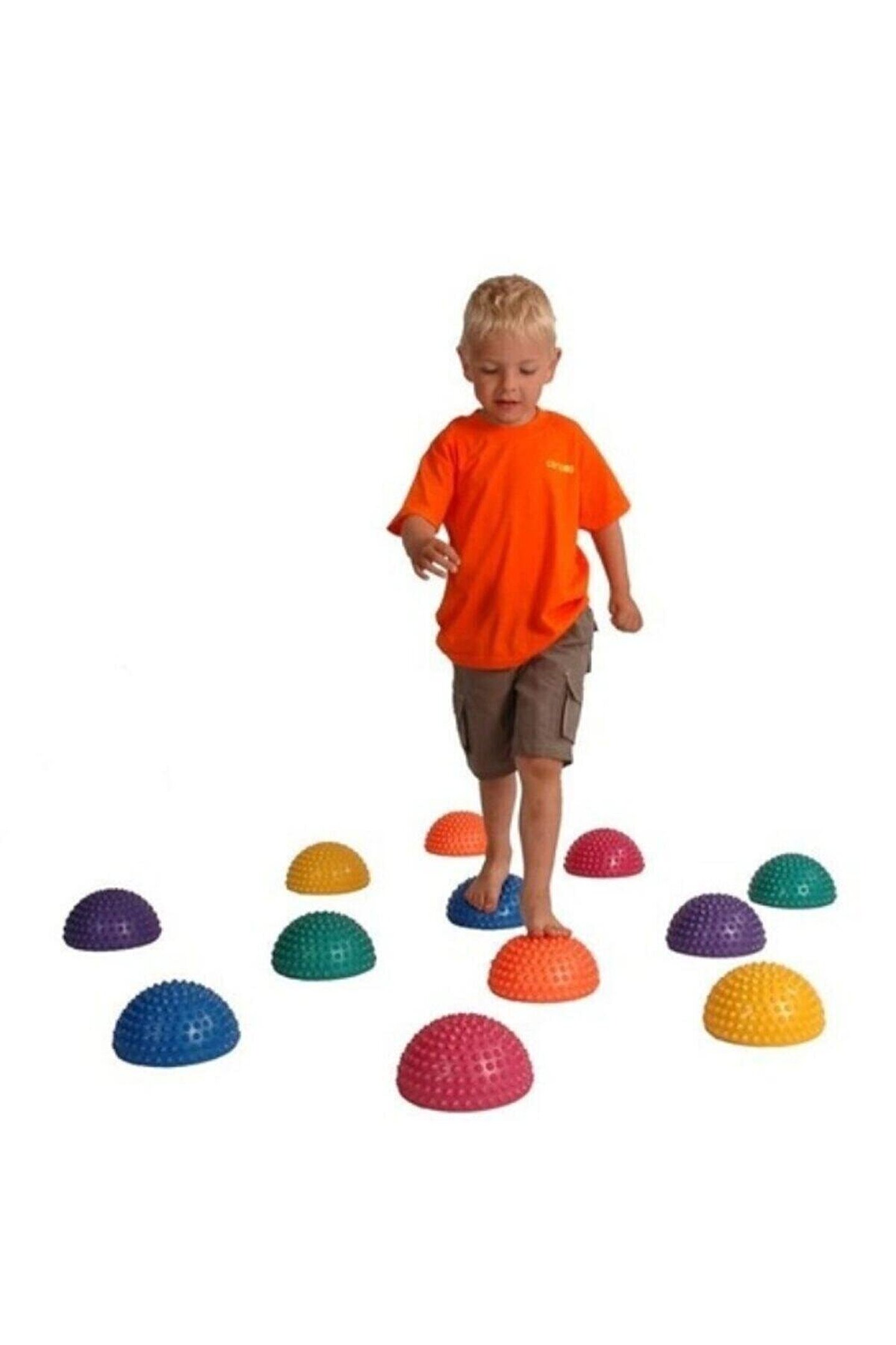 Adım Denge Nehir Taşları Dikenli Duyusal Denge Yarım Top 6 Lı Set Dikenli Yürüme Denge Egzersiz Taşı 6 Parça Hem evde hem de dışarıda Çocuk Egzersizleri için kullanılabilen 18 cm çapındaki max stones Kaymayan Zeminiyle de güven verir.; ; Bu ürün Denge ve Hareketlilik Becerisini bir arada çalıştırarak gelişmesini sağlar.; ; Renkler Kırmızı, Sarı, Turuncu, Mavi, Pembe, Yeşil, Mor, şeklinde farklılık göstermektedir.;