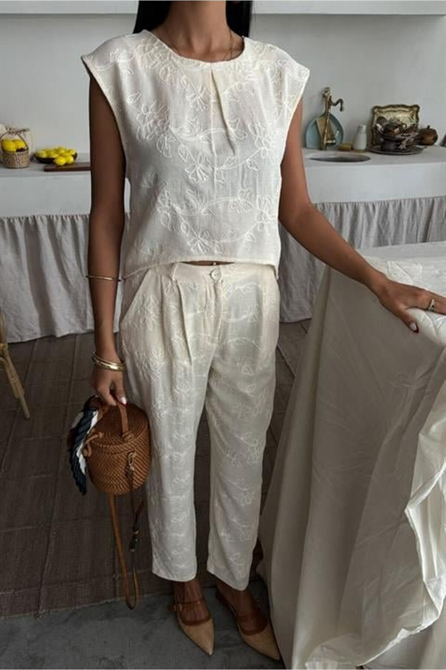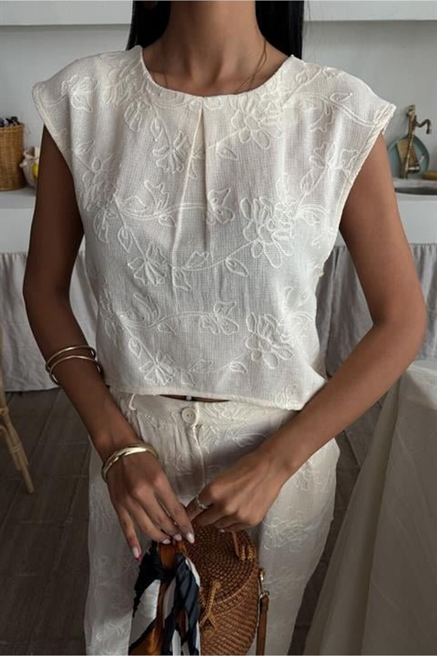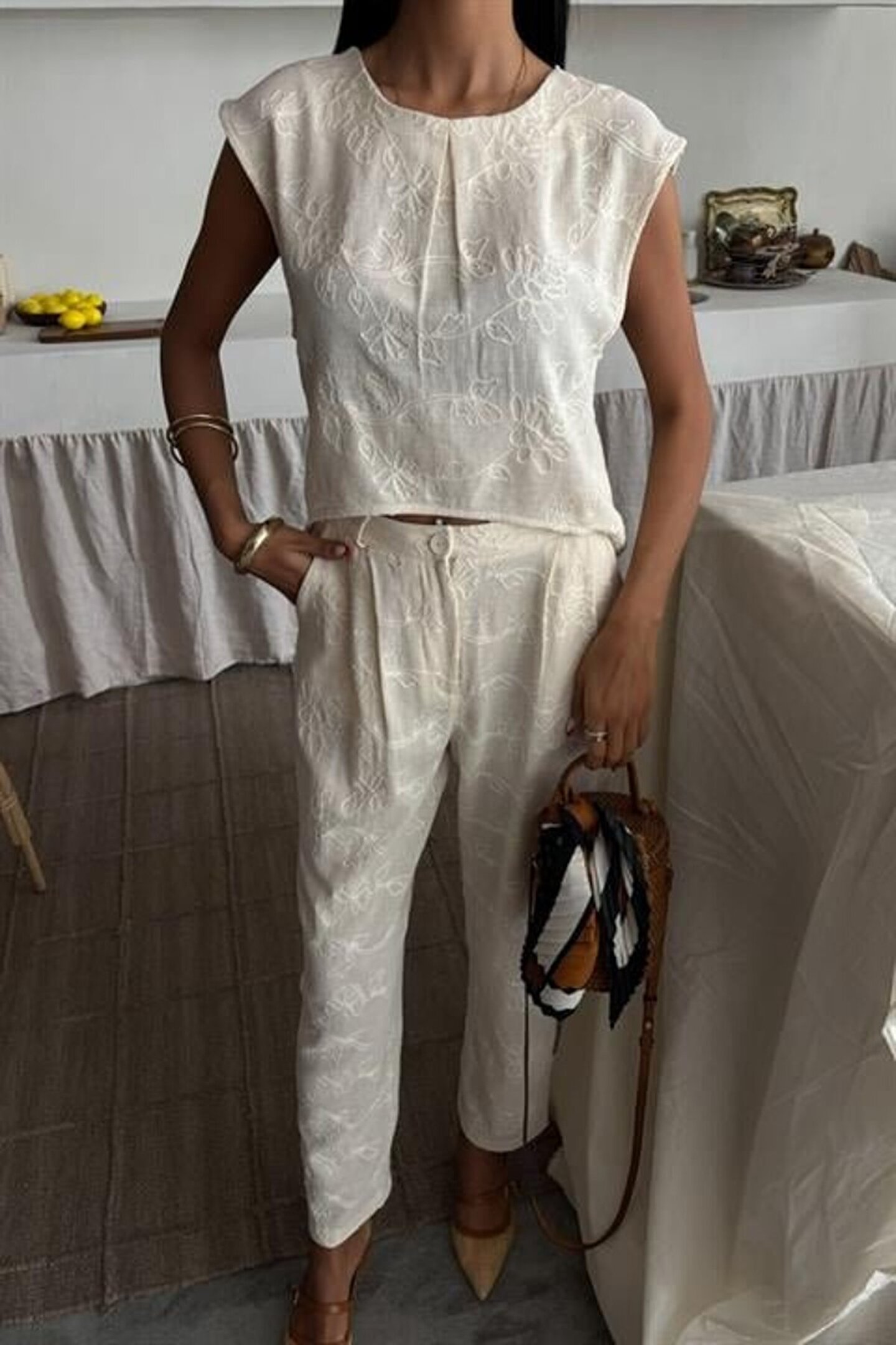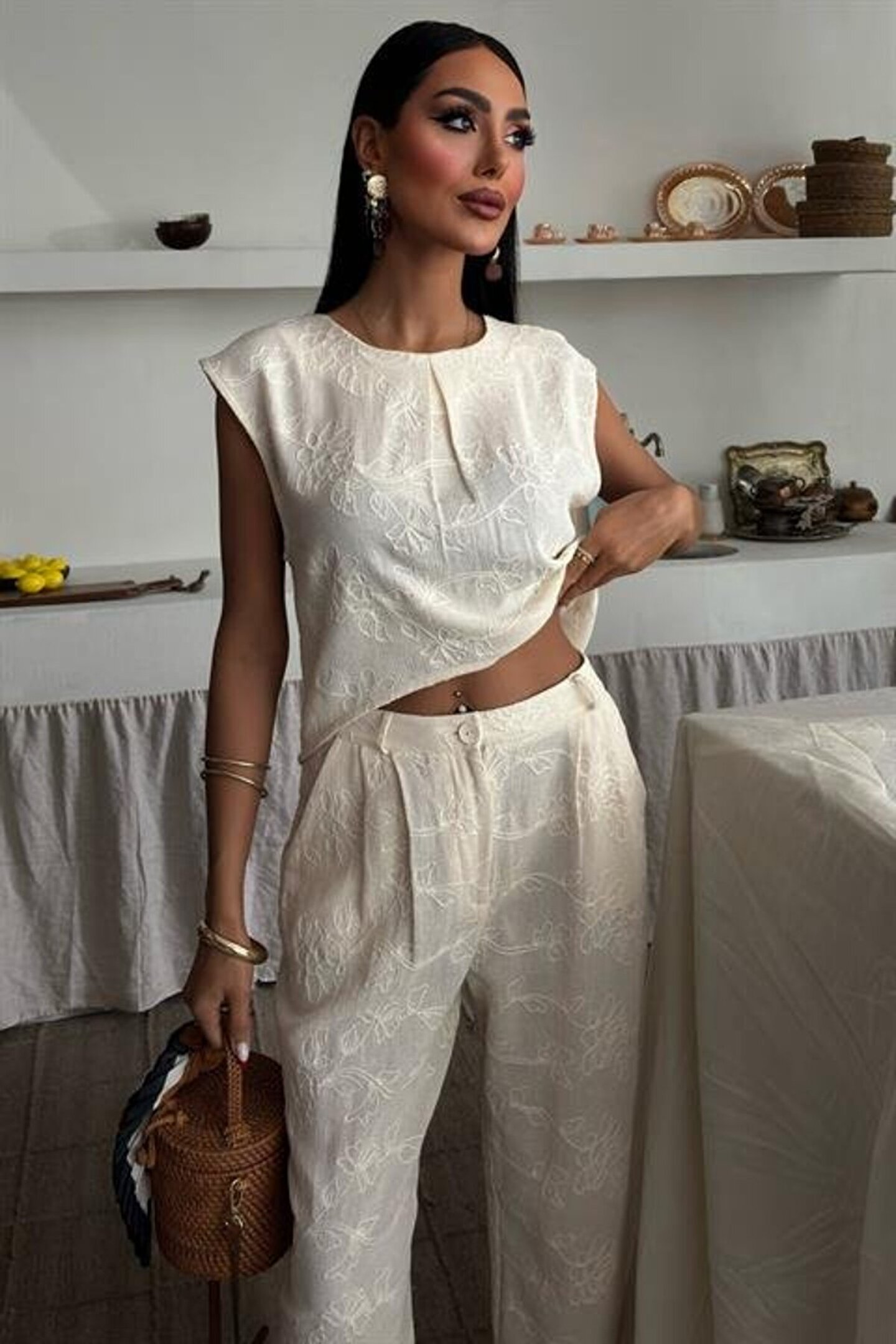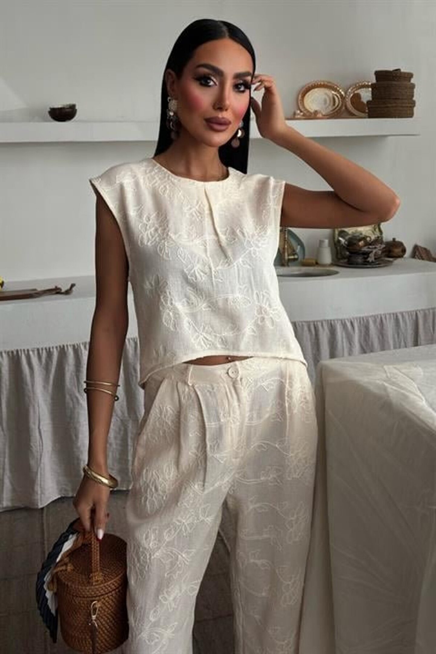 Shalina Süzüne Nakışlı Crop Takım 9796-08
