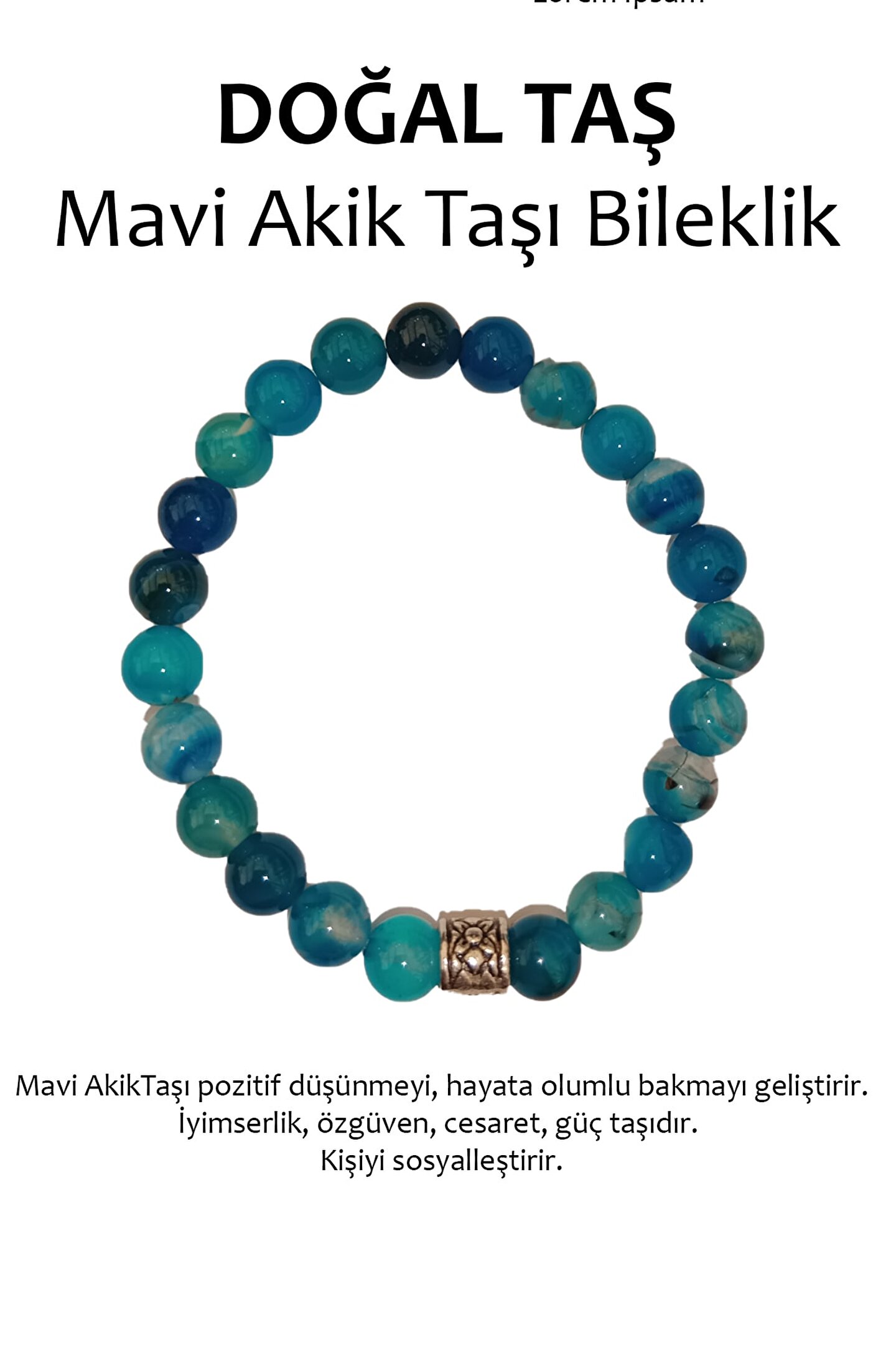 - Doğal akik taşı kullanılarak üretilmiş, şıklığı ve zarafeti bir arada sunan bileklik; - Mavi akik taşı, benzersiz desenleri ve renk tonlarıyla dikkat çekerken, her kıyafetle uyum sağlar; - Doğal taş materyali sayesinde her bileklik benzersizdir ve her biri farklı bir hikaye anlatır; - El yapımı olması, bu bilekliğin hem kalitesini hem de özgün tasarımını ön plana çıkarır;