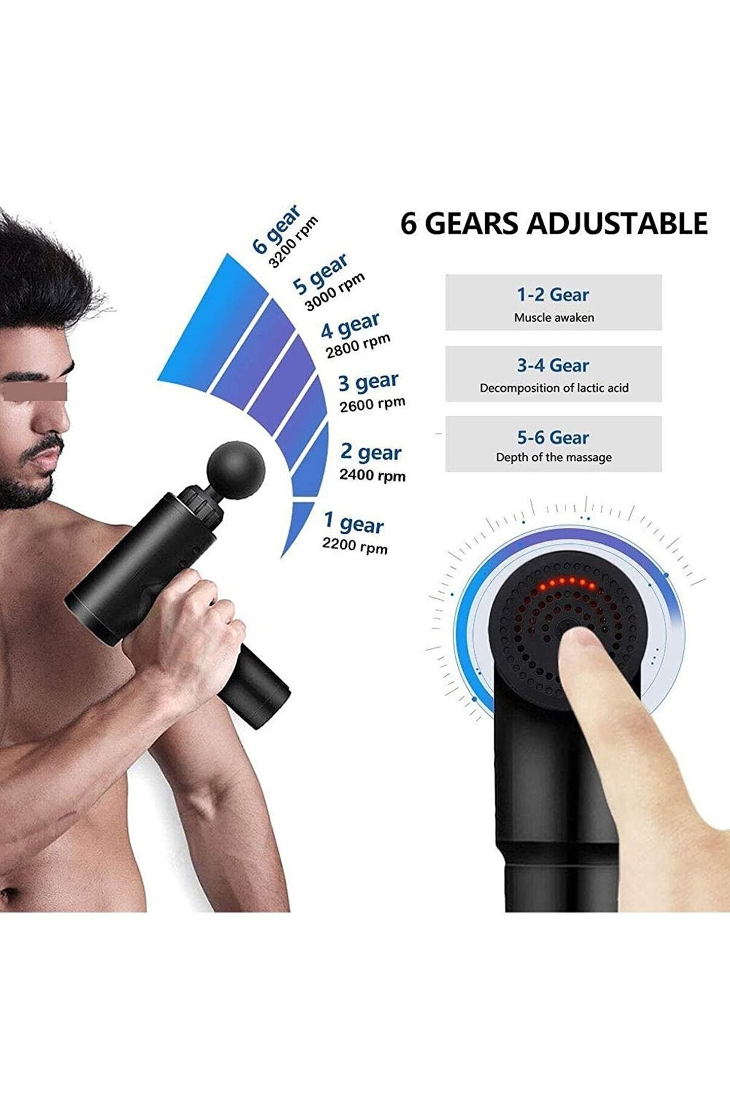 Sporcu masaj aleti 4 başlıklı şarjlı titreşimli yoğurmalı masaj tabancası sporcu masaj aleti 4 başlıklı 45 db çok sessiz çalışır. 6 farklı hız ve hassasiyet ayarı sayesinde her kas grubu için farklı masaj deneyimi sağlar 4 farklı masaj başlığı ile vücudunuzdaki tüm kas gruplarına uygun masajı yapabilir. Led strip göstergeleri sayesinde hız hassasiyet ve batarya göstergesi anında görülebilir. Genellikle fitnes yapan sporcuların çok tercih ettiği bir üründür. Günlük, iş sonrası yada spor sonrası uygulanacak terapi tüm vücudunuzu rahatlatır. Özellik: Farklı ihtiyaçları karşılamak için 4 farklı masaj başlığı ve 6 vitesli ayar içerir. Kas sertliğini ve ağrısını etkili bir şekilde azaltın ve kan dolaşımını artırın. Aşırı ısınma koruması ve aşırı ısınma koruması gibi güvenlik cihazları kullanmak güvenlidir. Egzersiz sonrası yorgunluktan kurtarma, spor yaralanmalarından iyileşme, iyileşme sırasında ağrı kesici ve inflamatuar yanıtın azalması için uygun ürün içeriği 1 adet masaj tabancası 4 ad masaj başlığı 1 adet çalıştırma kablosu 1 adet kullanma kılavuzu