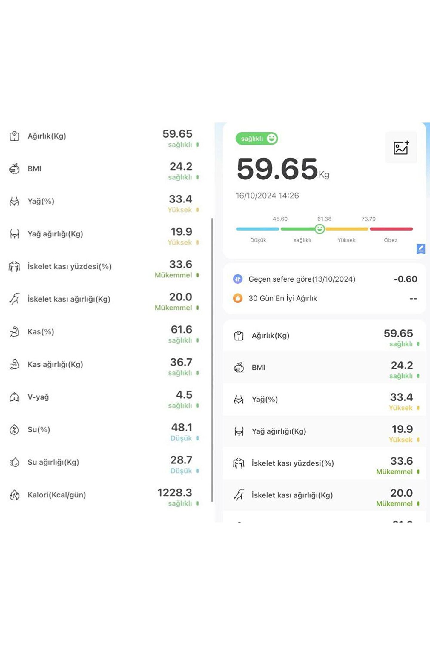 Ağırlık Eğilimi: Haftalık rapor, aylık rapor ve üç aylık rapor da dahil olmak üzere ağırlık değişimlerini eğriler aracılığıyla gösterir.
