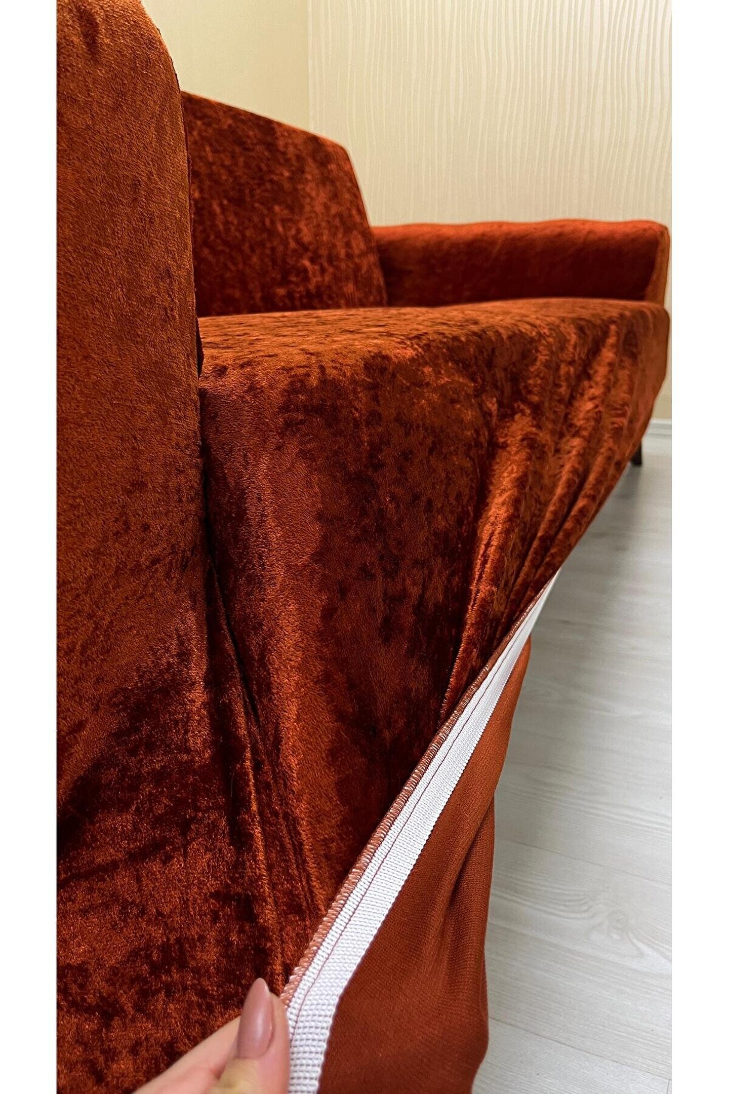 Sahaneev 11 Parlak Kadife Giydirme Koltuk Örtüsü(KİREMİT)