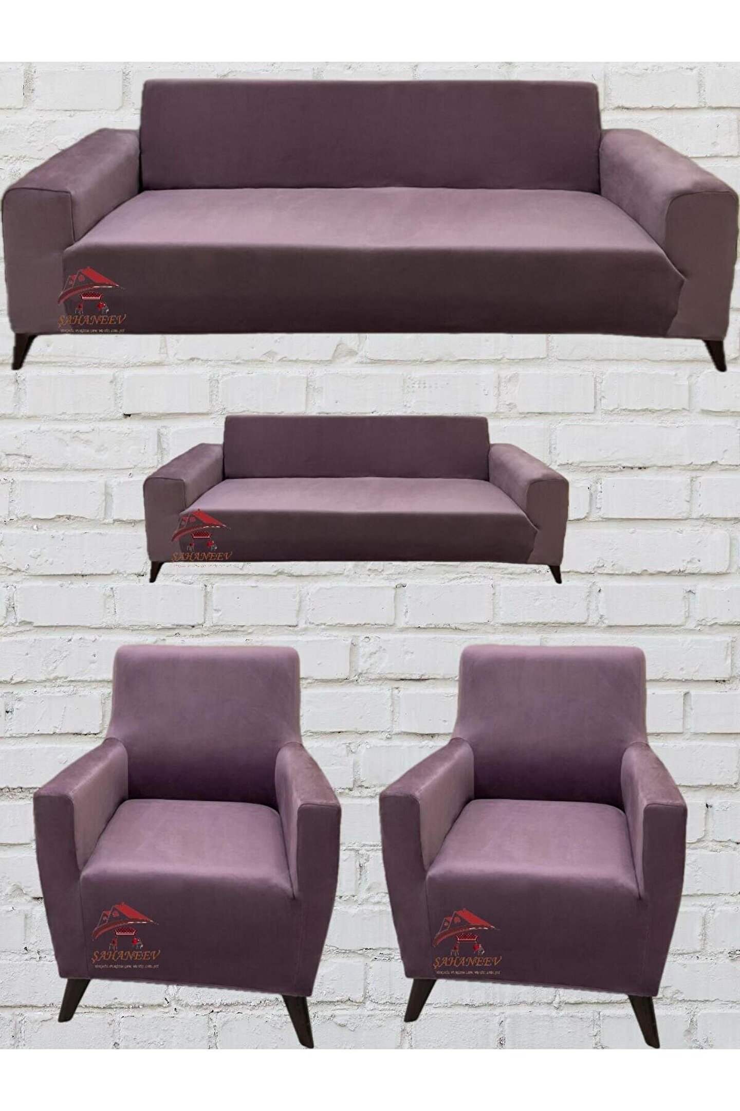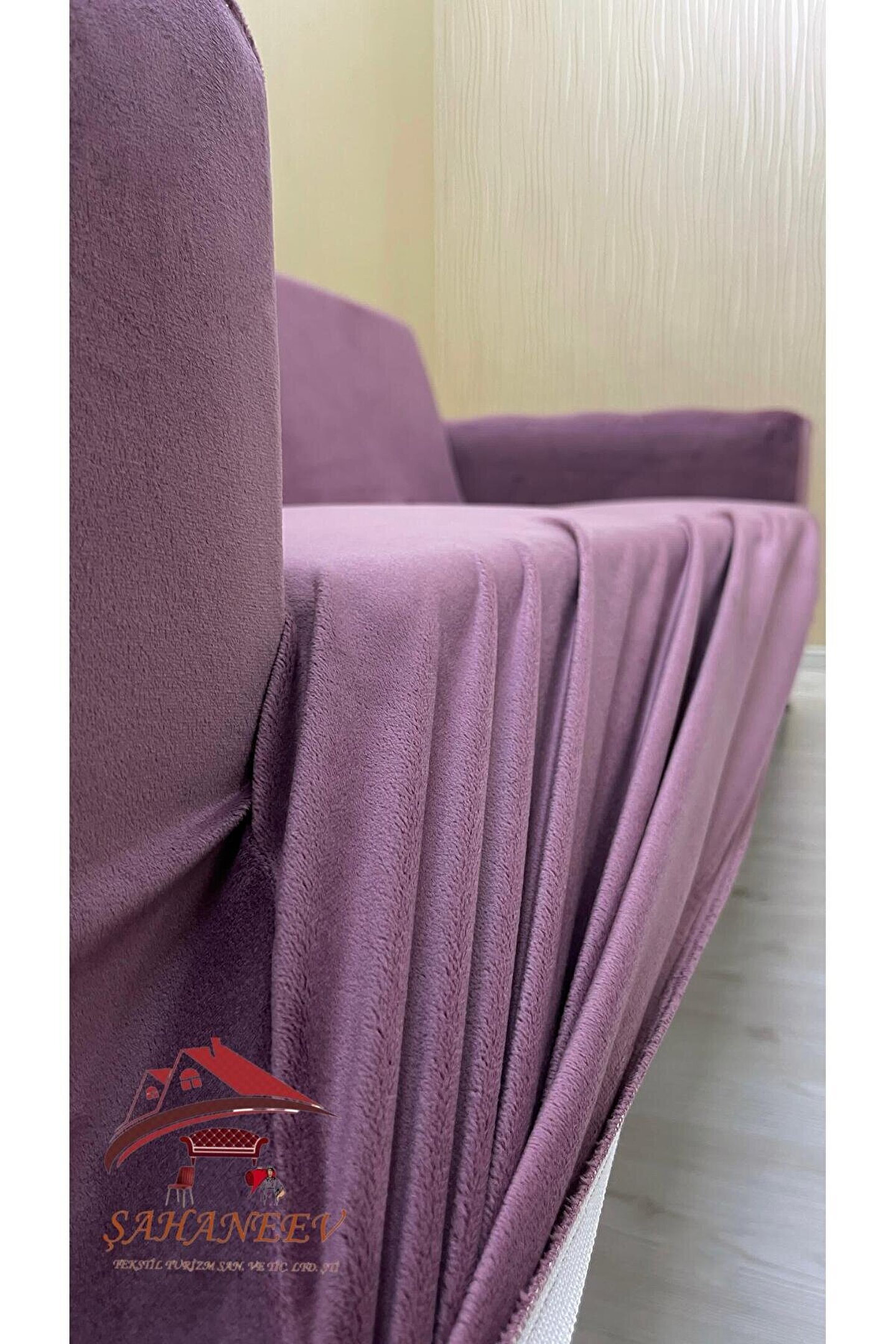 Sahaneev 3+2+1+1 İtalyan Süet Koltuk Örtüsü(GÜLKURUSU RENK)