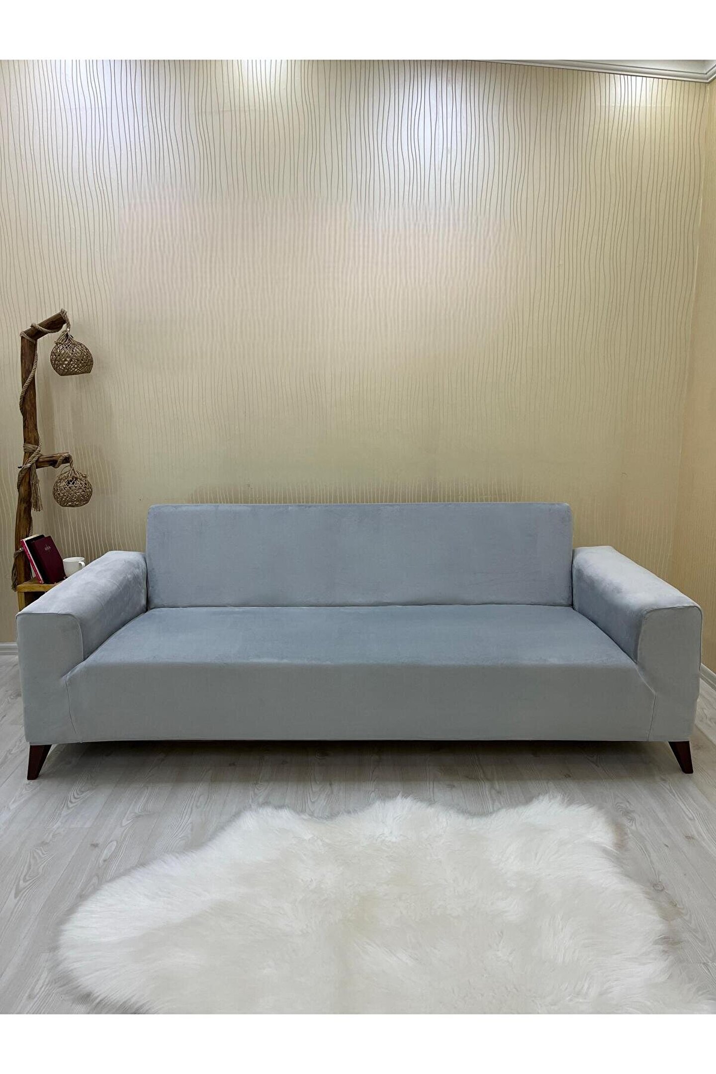 Sahaneev 3+3 İtalyan Süet Koltuk Örtüsü(AÇIKGRİ)