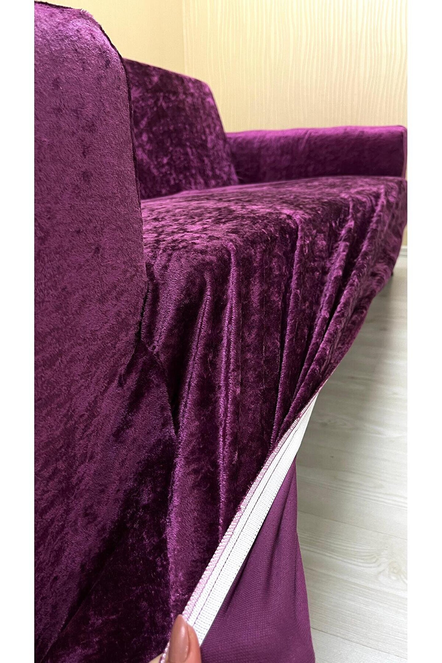 Sahaneev 3211 Parlak Kadife Giydirme Koltuk Örtüsü(FUŞYA)