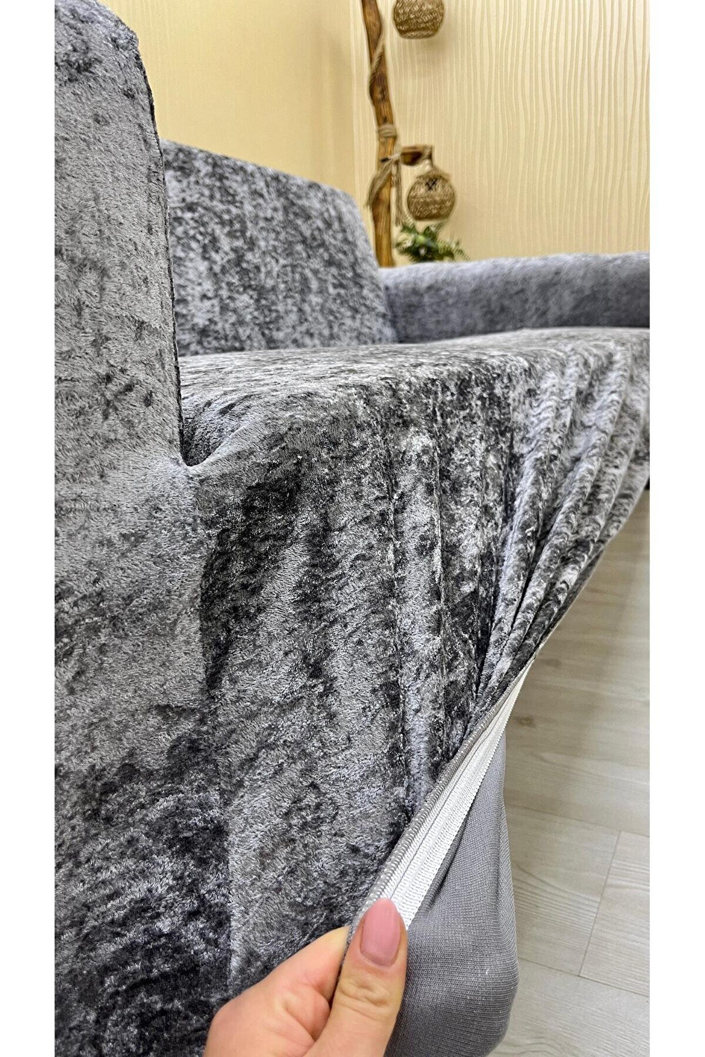 Sahaneev 332 Parlak Kadife Giydirme Koltuk Örtüsü(GRİ)