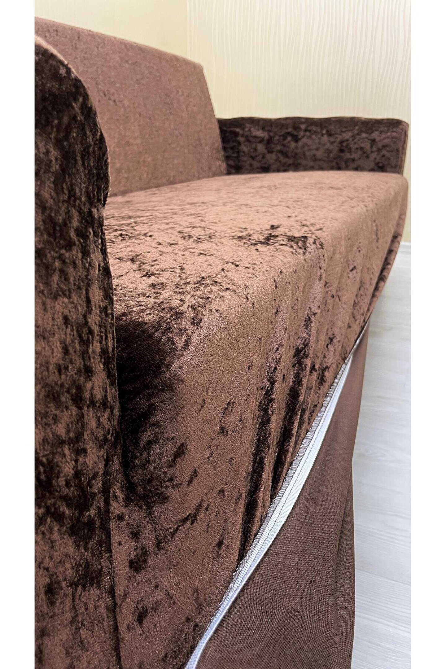 Sahaneev 333 Parlak Kadife Giydirme Koltuk Örtüsü(KAHVERENGİ)