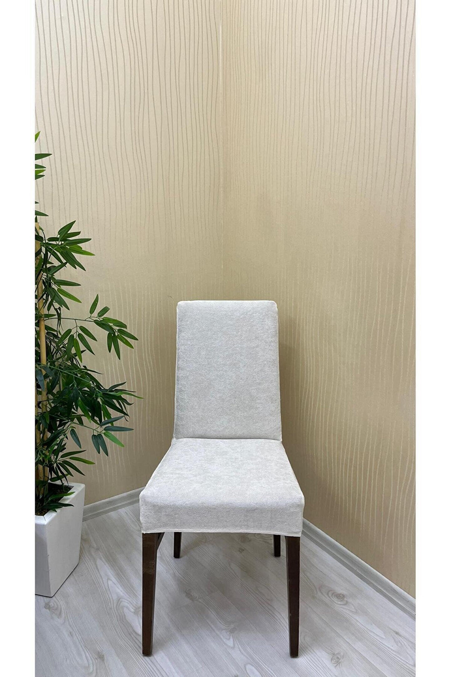 Sahaneev babyface kumaş sandalye kılıfı KREM RENK(4 adet)