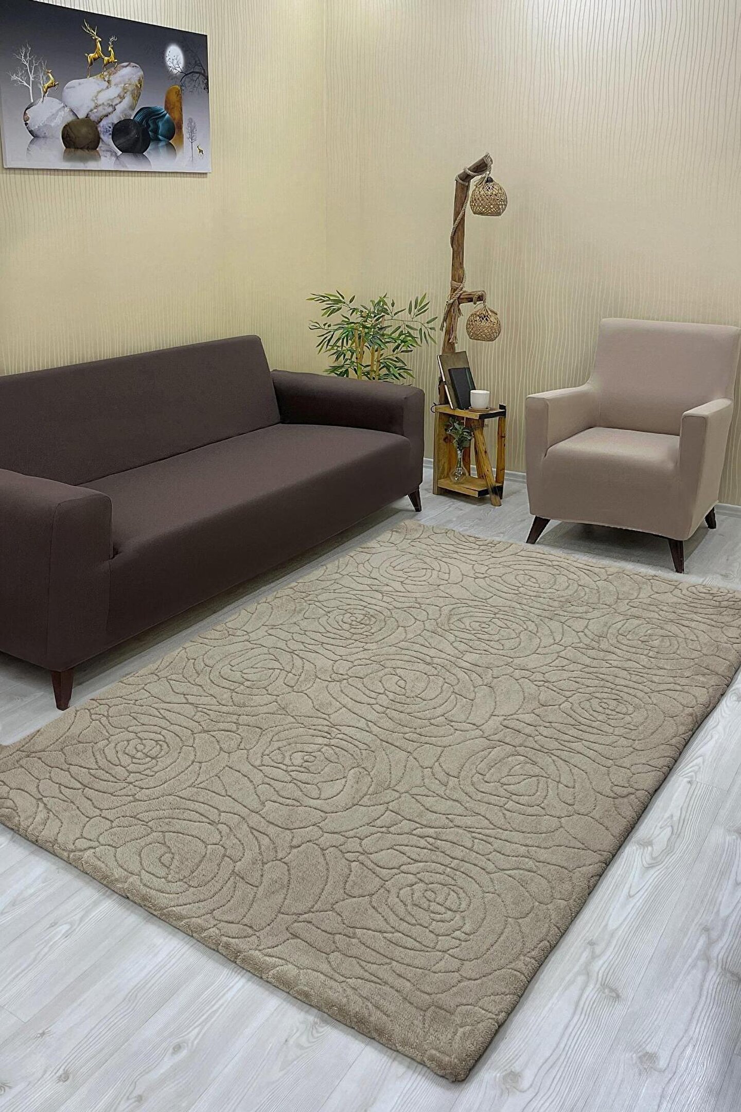 Sahaneev halı örtüsü welsoft kumaş VİZON RENK (GÜL MODEL)