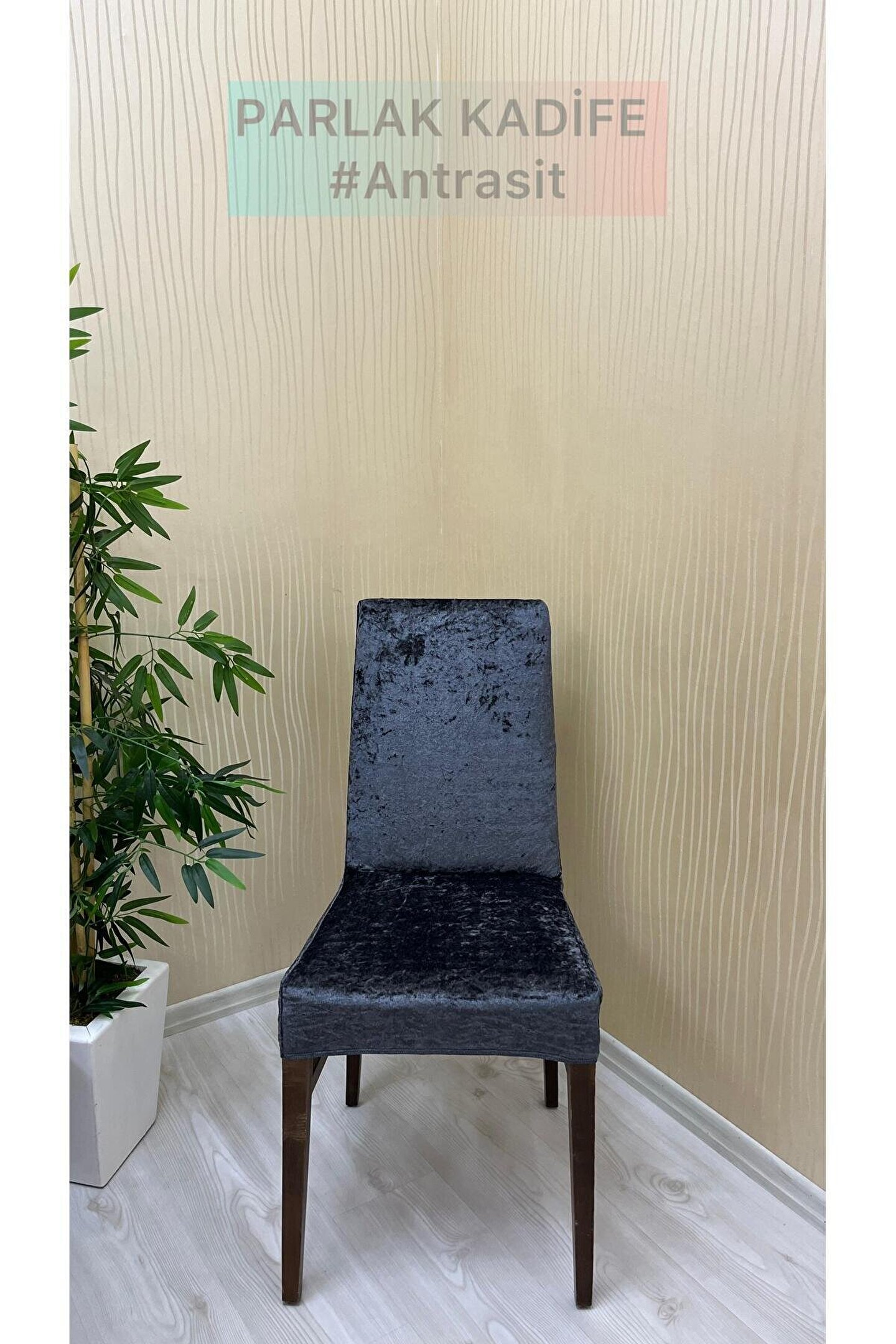 Sahaneev Parlak Kadife Kumaş Standart Sandalye Kılıfı ANTRASİT RENK (4 ADET)