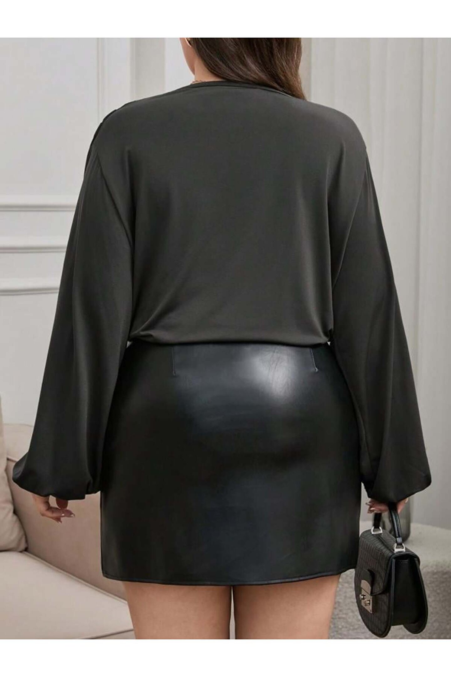 Şair Kadın Kruvaze Yaka Büyük Beden Sandy Bluz