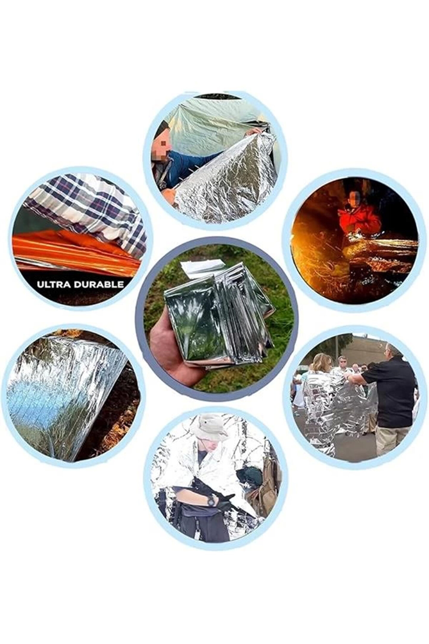 Bu ürün hakkında Dayanıklı battaniyelerimiz hava koşullarına dayanıklı alüminize polietilen mylar malzemeden üretilmiştir evotomobil acil durum kitleri için mükemmeldir kışın sıcak yazın serin tutar Battaniyeler dayanıklıdır tekrar kullanılabilir rüzgar geçirmez su geçirmez nem geçirmezdir Kamp yaparken bahçe işlerinde spor yaparken iç ve dış mekanlarda afet durumları deprem için kullanılır Her acil termal battaniye açıldıktan sonra 130 x 210 cm normal güvenlik kamp acil durum battaniyelerinden daha büyüktür battaniyeler hayatta kalma acil durum barınağı hayatta kalma çadırı olarak kullanılabilir Acil Durum Battaniyeleri Hava Koşullarına Dayanıklı Malzemeden Üretilmiştir Acil Termal Battaniye tüm soğuk ve sıcak hava koşullarında rahat ve kolay koruma sağlar Vücut ısısının 80ını koruyacak şekilde tasarlanmıştır Paket İçeriği 1 adet Acil Durum Battaniyesi Battaniye Bebek Duyusal Hafif ve kompakt Kolay saklama için kompakt boyuta katlanmıştır