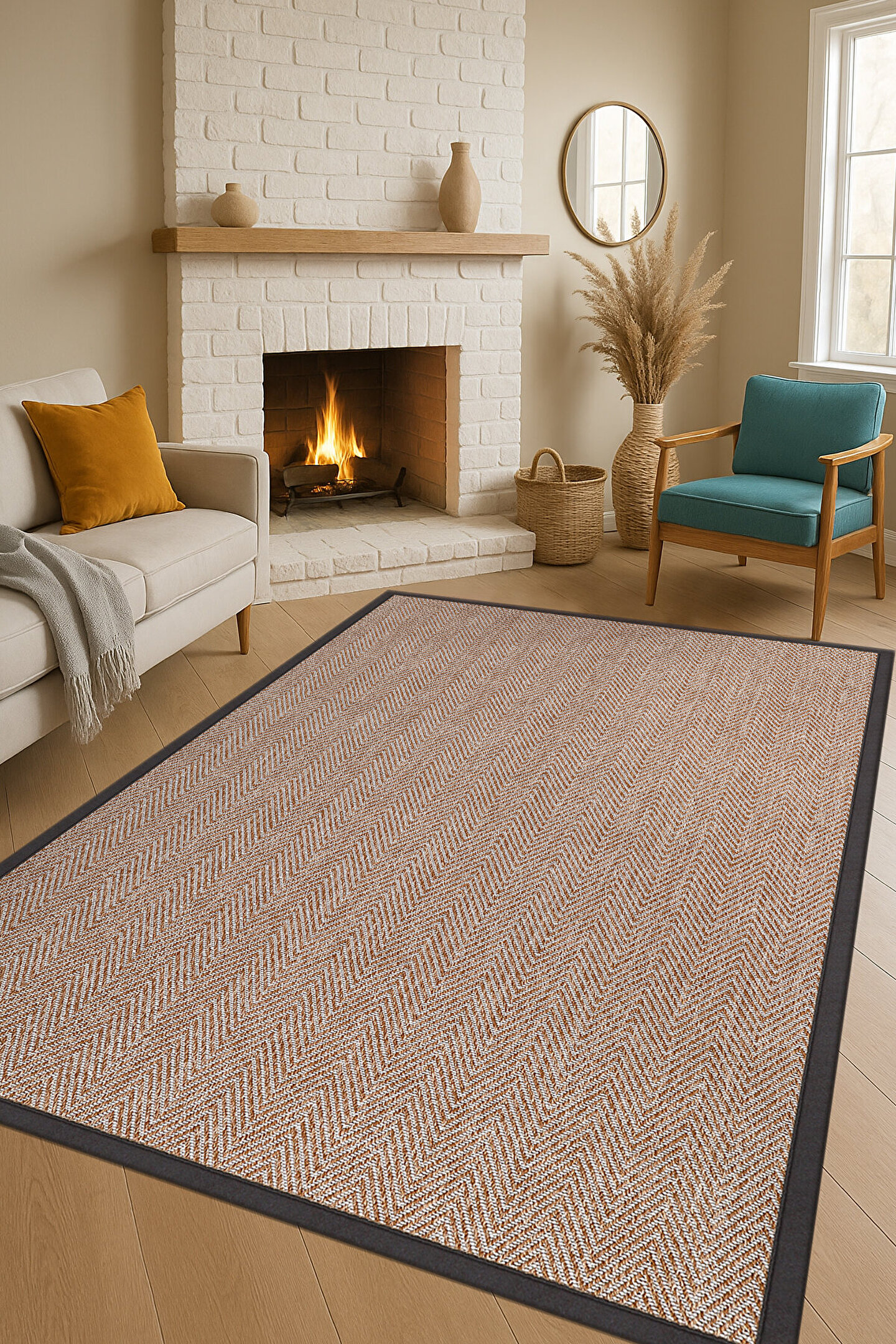SARAZ HALI 0408-Antrasit Kumaş Bordür Sisal Halı Kilim Hav Toz Vermez Kolay Temizlenen Hasır Kilim