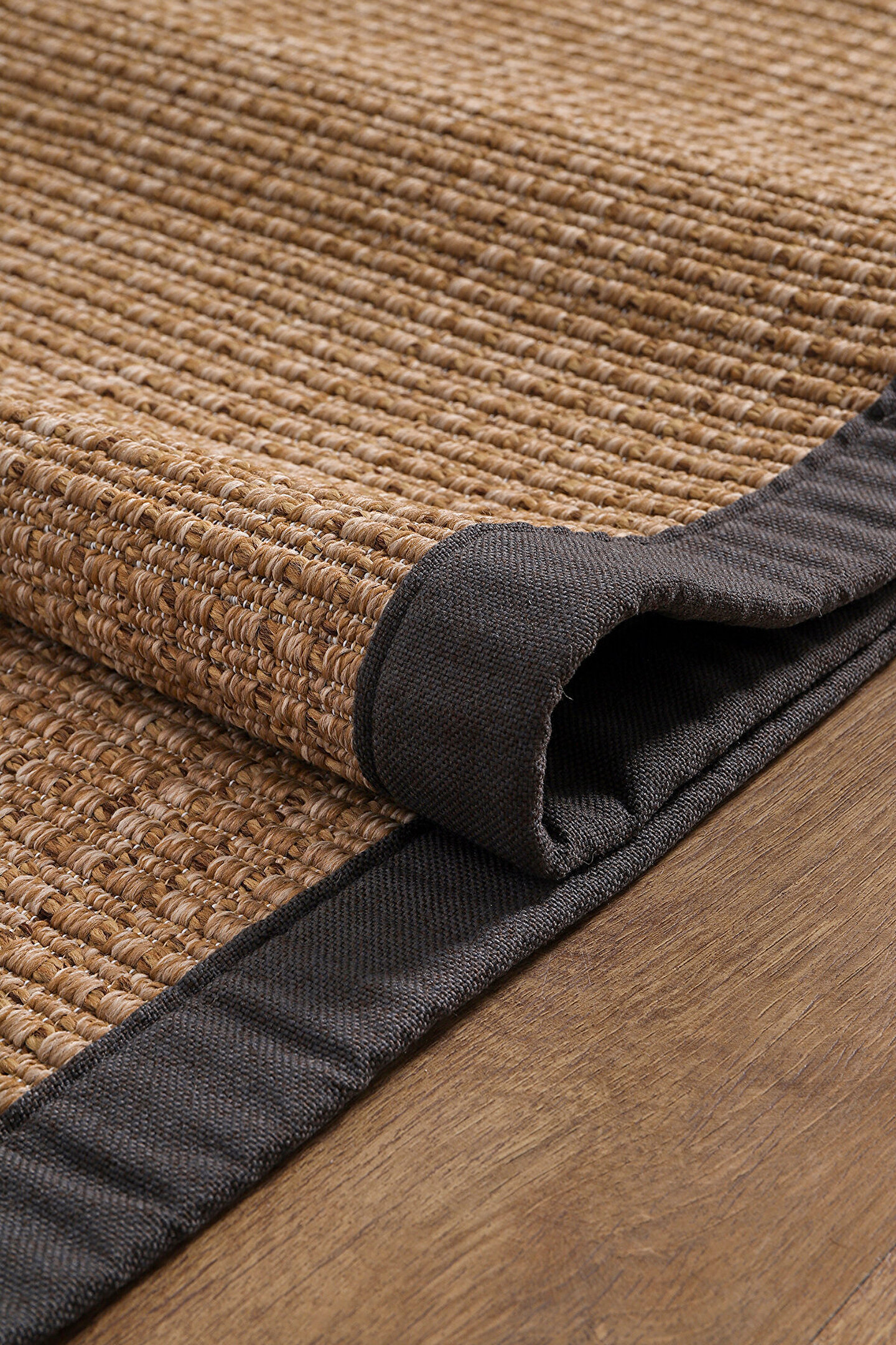 SARAZ HALI 0465-Antrasit Kumaş Bordür Sisal Jut Halı Kilim Hav Toz Vermez Kolay Temizlenen Hasır Kilim