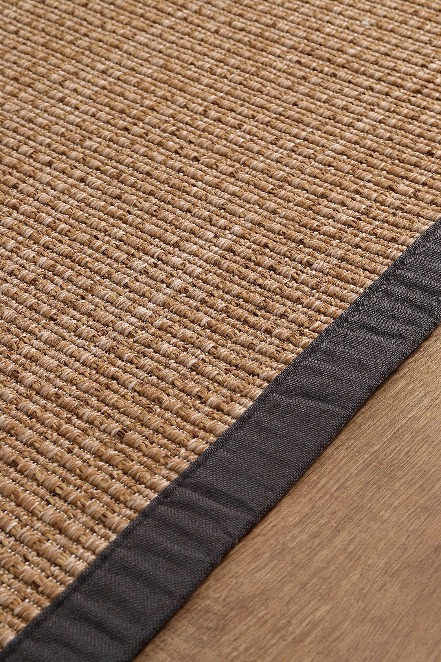 SARAZ HALI 0465-Antrasit Kumaş Bordür Sisal Jut Halı Kilim Hav Toz Vermez Kolay Temizlenen Hasır Kilim