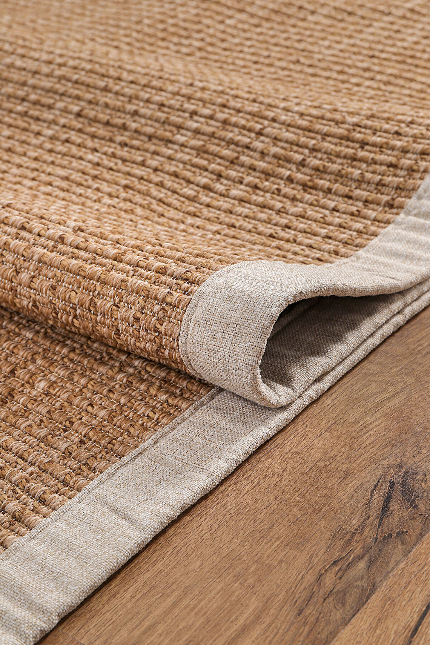 SARAZ HALI 0465-Bej Kumaş Bordür Sisal Jut Halı Kilim Hav Toz Vermez Kolay Temizlenen Hasır Kilim