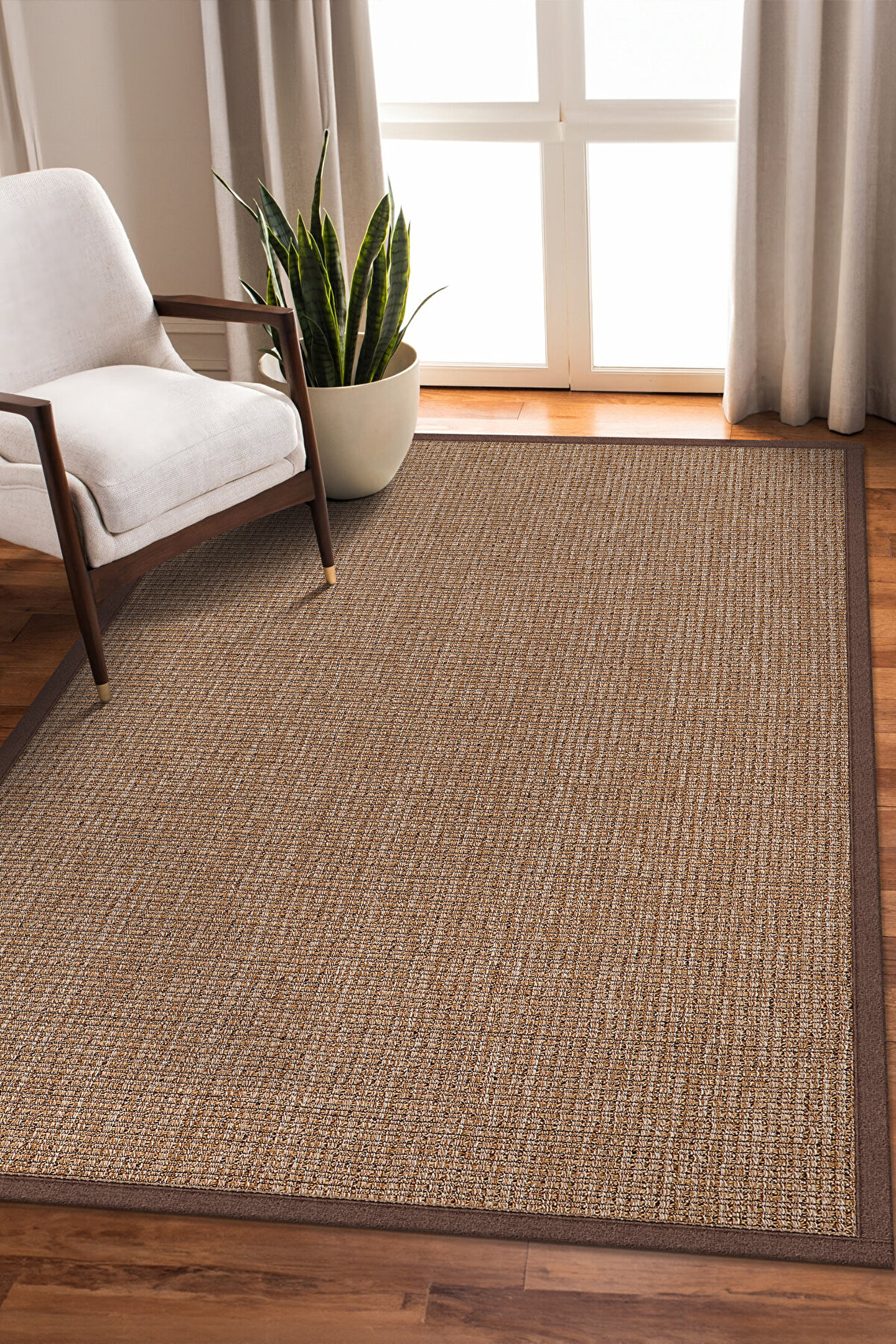 SARAZ HALI 0465-Kahverengi Kumaş Bordür Sisal Jut Halı Kilim Hav Toz Vermez Kolay Temizlenen Hasır Kilim
