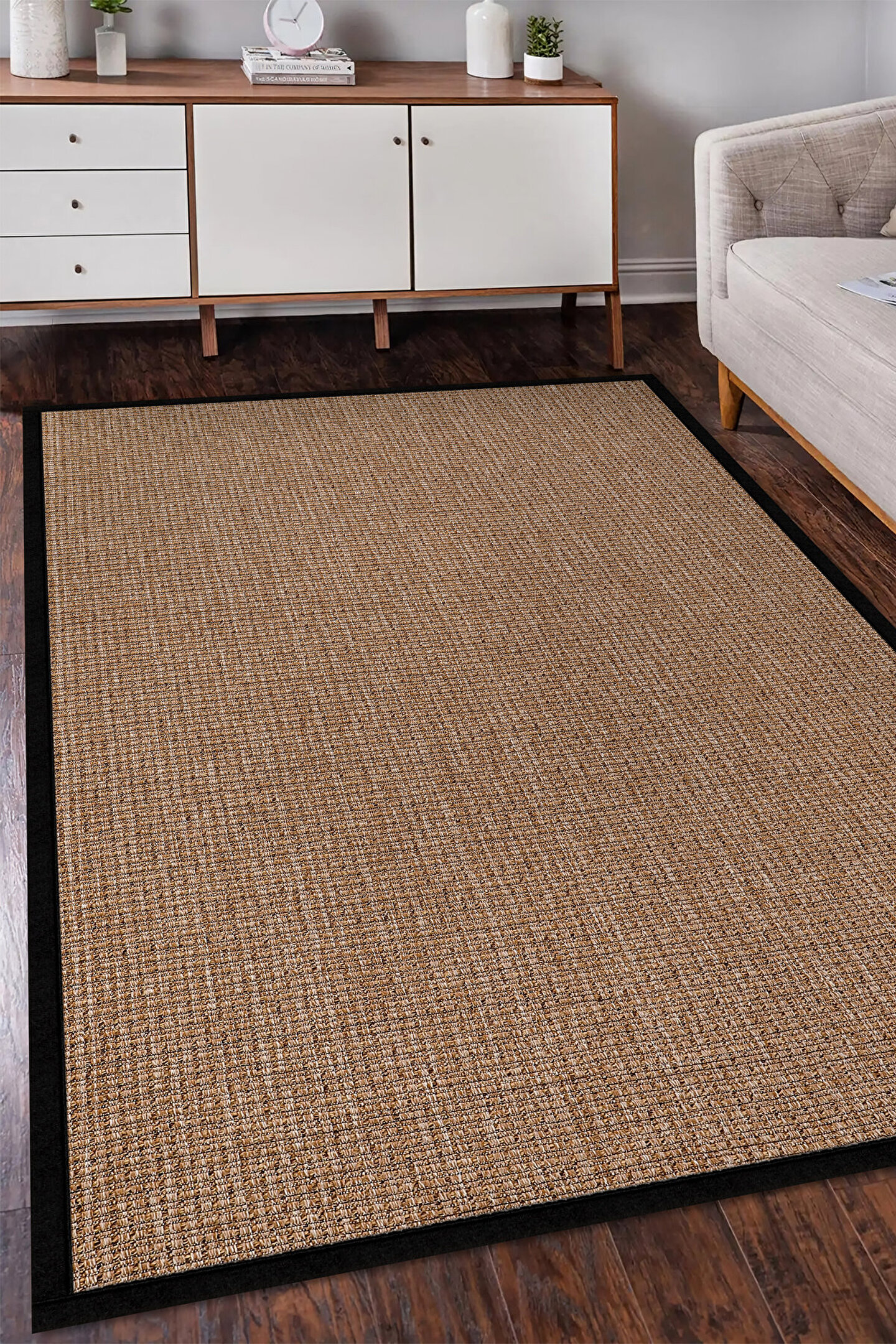 SARAZ HALI 0465-Siyah Kumaş Bordür Sisal Jut Halı Kilim Hav Toz Vermez Kolay Temizlenen Hasır Kilim
