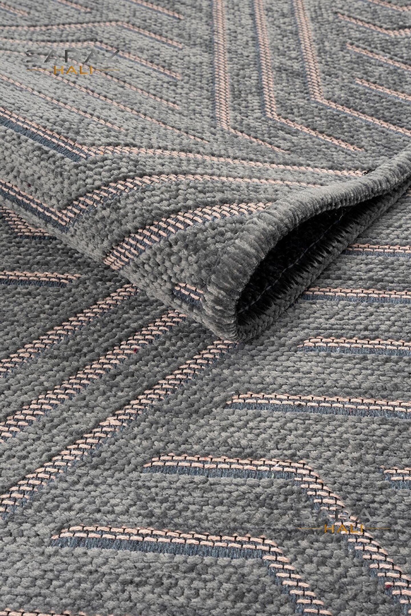SARAZ HALI Ada Kilim Modern Salon Mutfak Koridor Kesme Yolluk Dokuma Makine Halısı zigzag antrasit