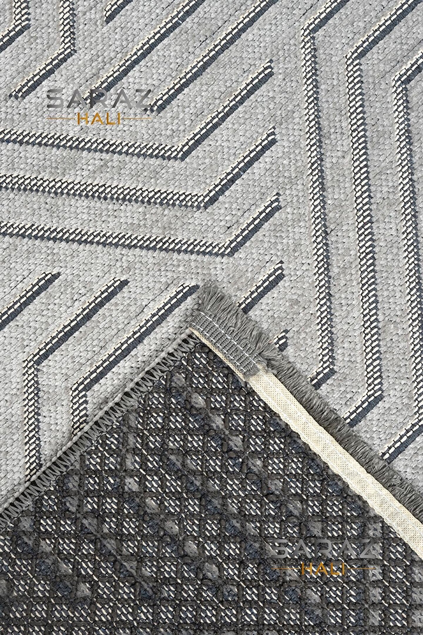 SARAZ HALI Ada Kilim Modern Salon Mutfak Koridor Kesme Yolluk Dokuma Makine Halısı zigzag krem