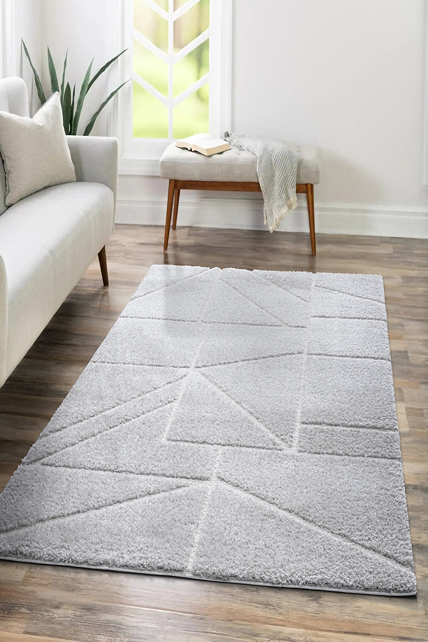 SARAZ HALI B109 Gri Kolay Kullanım Hav Toz Vermez Yumuşak Dokulu Uzun Tüylü Modern Shaggy Halı