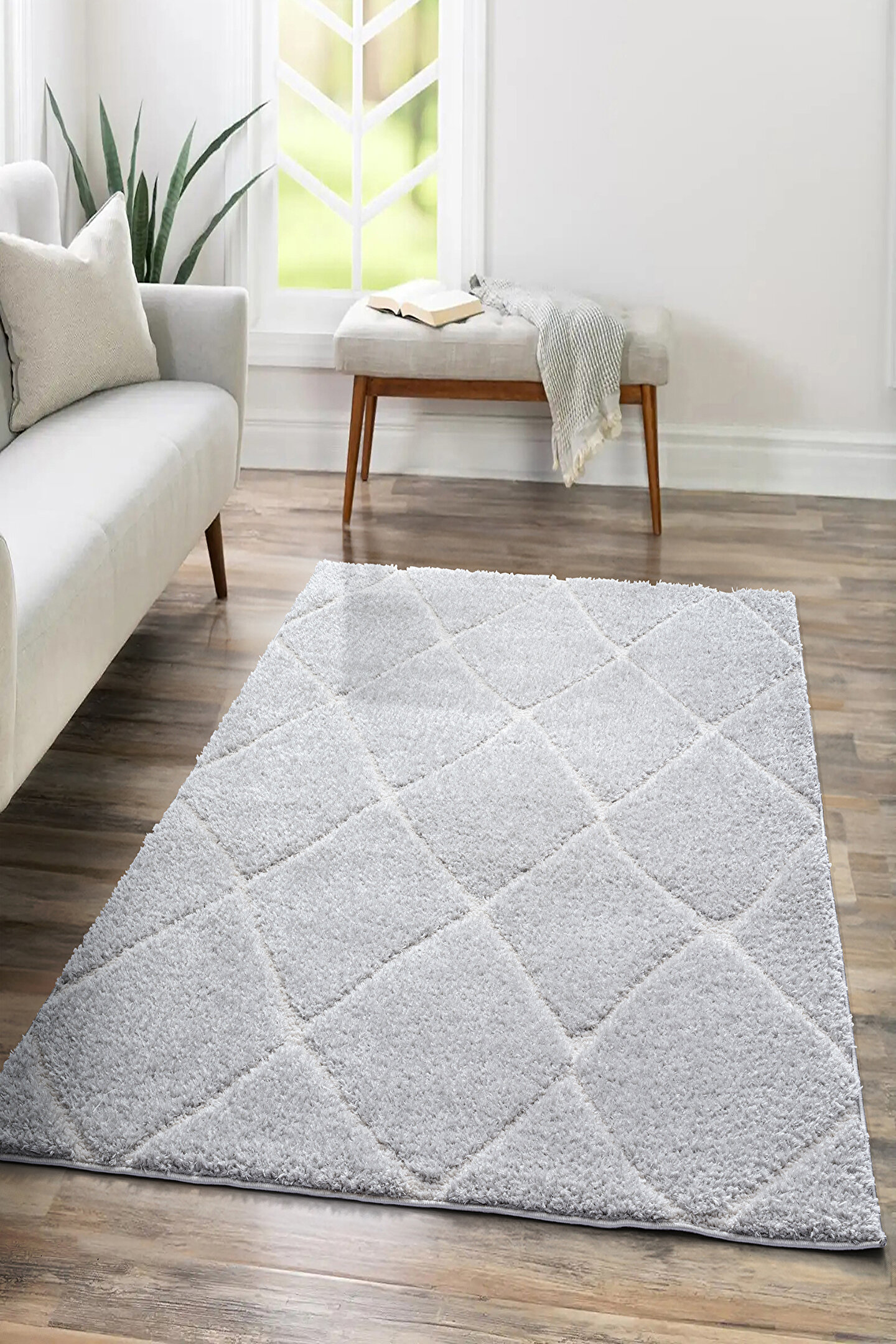 SARAZ HALI B109 Gri Kolay Kullanım Hav Toz Vermez Yumuşak Dokulu Uzun Tüylü Modern Shaggy Halı