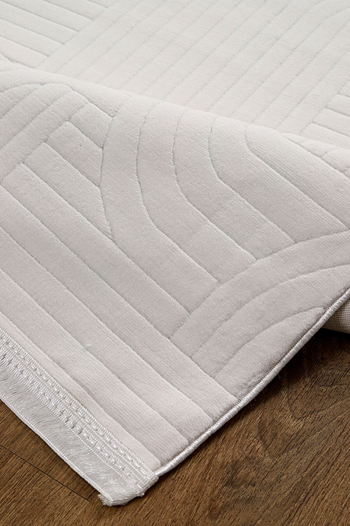 SARAZ HALI Bambu Saten Parlak Tüylü Yumuşak Kadife Halı Hav Tüy Vermez Taç Beyaz