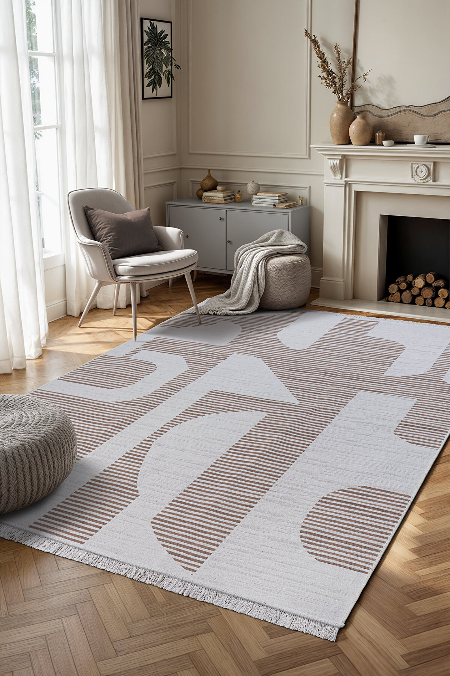 SARAZ HALI Bohem Touch Serisi Çift Taraflı Dokuma Pamuklu Kilim 2108 Bej