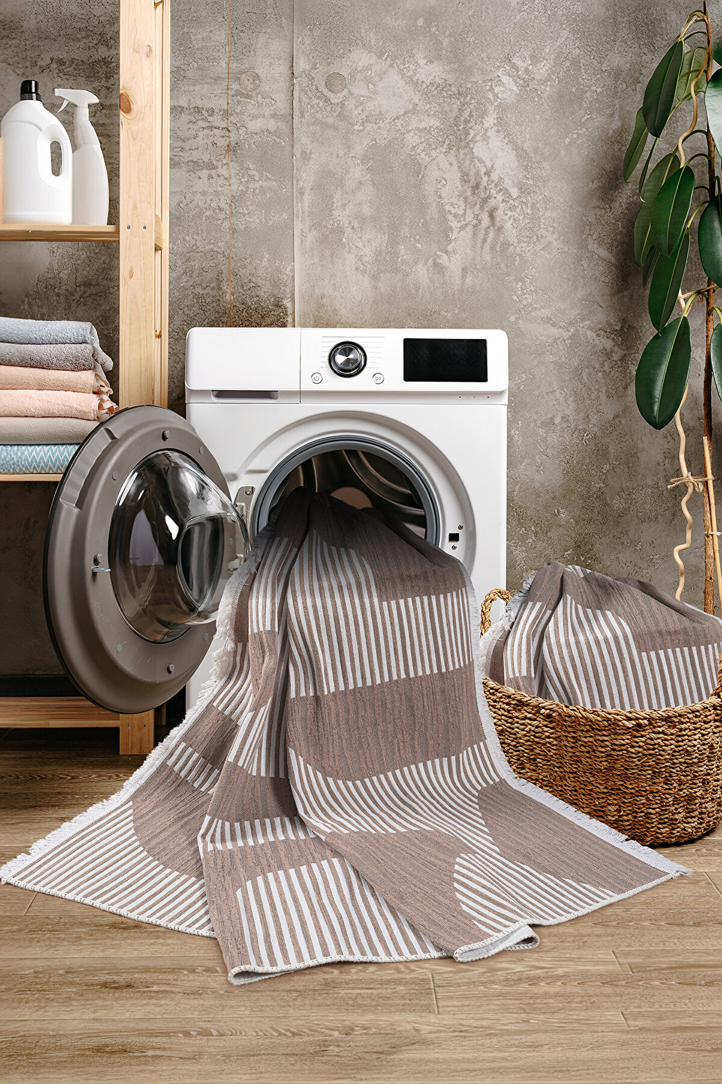 - Bej rengin sıcak tonlarıyla evinizin dekorasyonuna uyum sağlayan, çift taraflı kullanım imkanı sunan Bohem Touch Serisi Çift Taraflı Dokuma Pamuklu Kilim.; - Kolay bakım avantajı ile 30 derecede sıkma yapmadan yıkama kolaylığı sağlayarak zamandan tasarruf ederken kiliminizin ilk günkü gibi kalmasını garanti eder.; - Eskitme deseniyle vintage ve bohem tarzını oturma odanızda hissettirir; İskandinav stilinin sadeliği ve zarafetiyle dikkat çeker.; - Pamuk tabanı sayesinde ayaklarınızın altında doğal bir his bırakırken, dayanıklılığıyla uzun süreli kullanım vaat eder.; - Dikdörtgen şekliyle çeşitli mekanlarda rahatça kullanılabilir; salon veya oturma odasında konforlu bir atmosfer oluşturur.; - Düz saçak detayları ile modern çizgilere sahip olup, düzgün kenarları sayesinde estetik bir görünüm sergiler.; - %100 pamuk materyali cildinizle dost dokunuşlar sunarken, orta hav yüksekliği (6 - 12 mm) yumuşaklık ve konforu artırır.; - Türkiye'de üretilmiş olmasıyla yerel üretim avantajlarından faydalanmanızı sağlar; kalite standartlarına uygun olarak tasarlanmıştır.