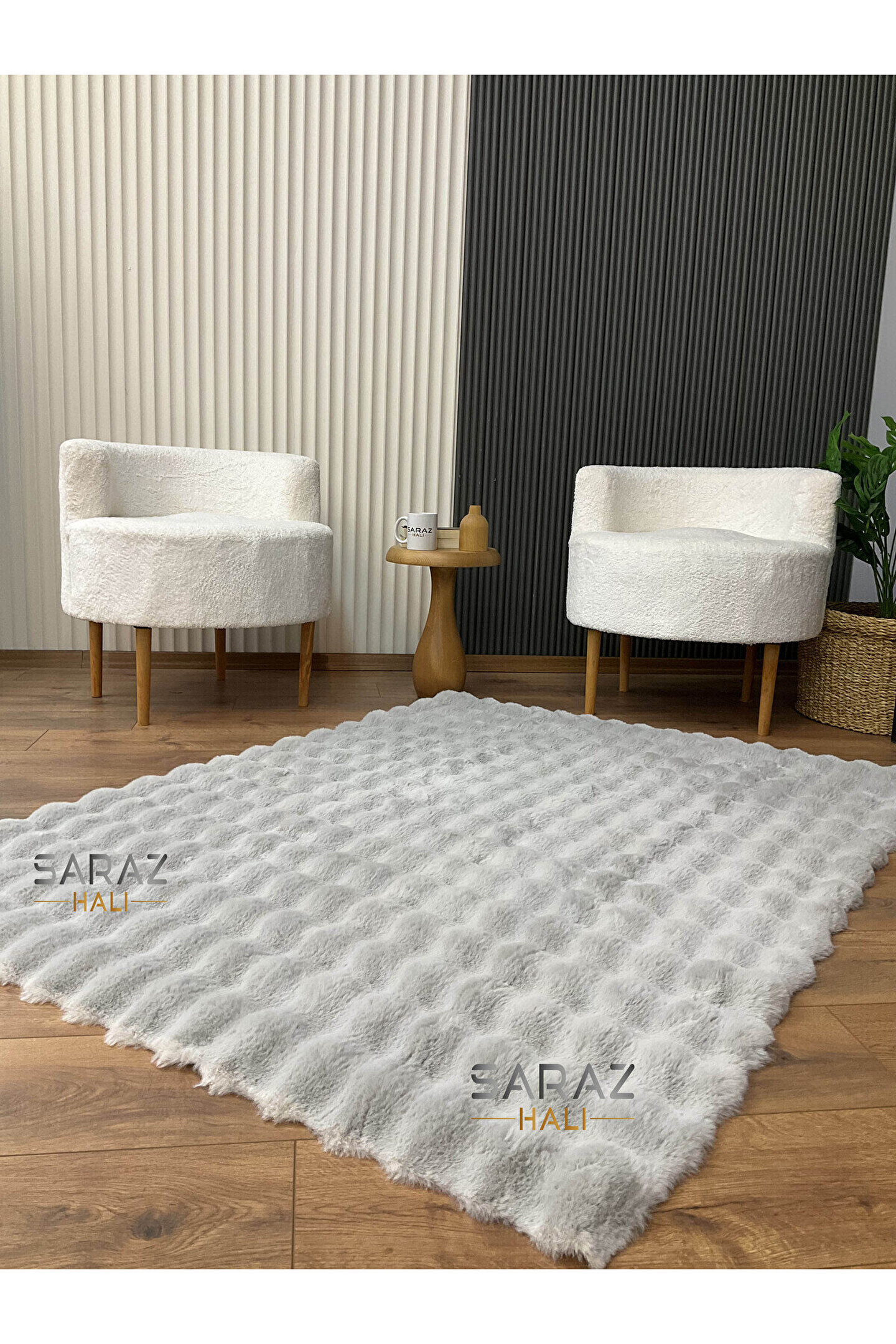 SARAZ HALI Bubble Tavşan Post Yumuşacık Tavşan Tüyü Kaymaz Yıkanabilir Gri