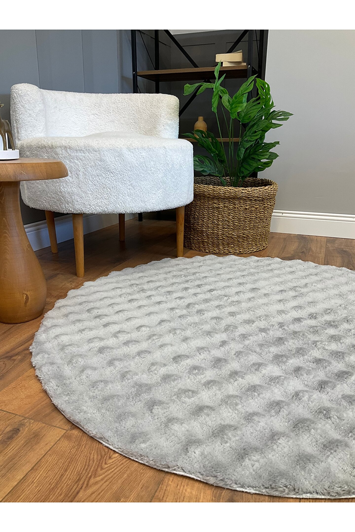 SARAZ HALI Bubble Tavşan Yuvarlak Post Yumuşacık Tavşan Tüyü Kaymaz Yıkanabilir Gri