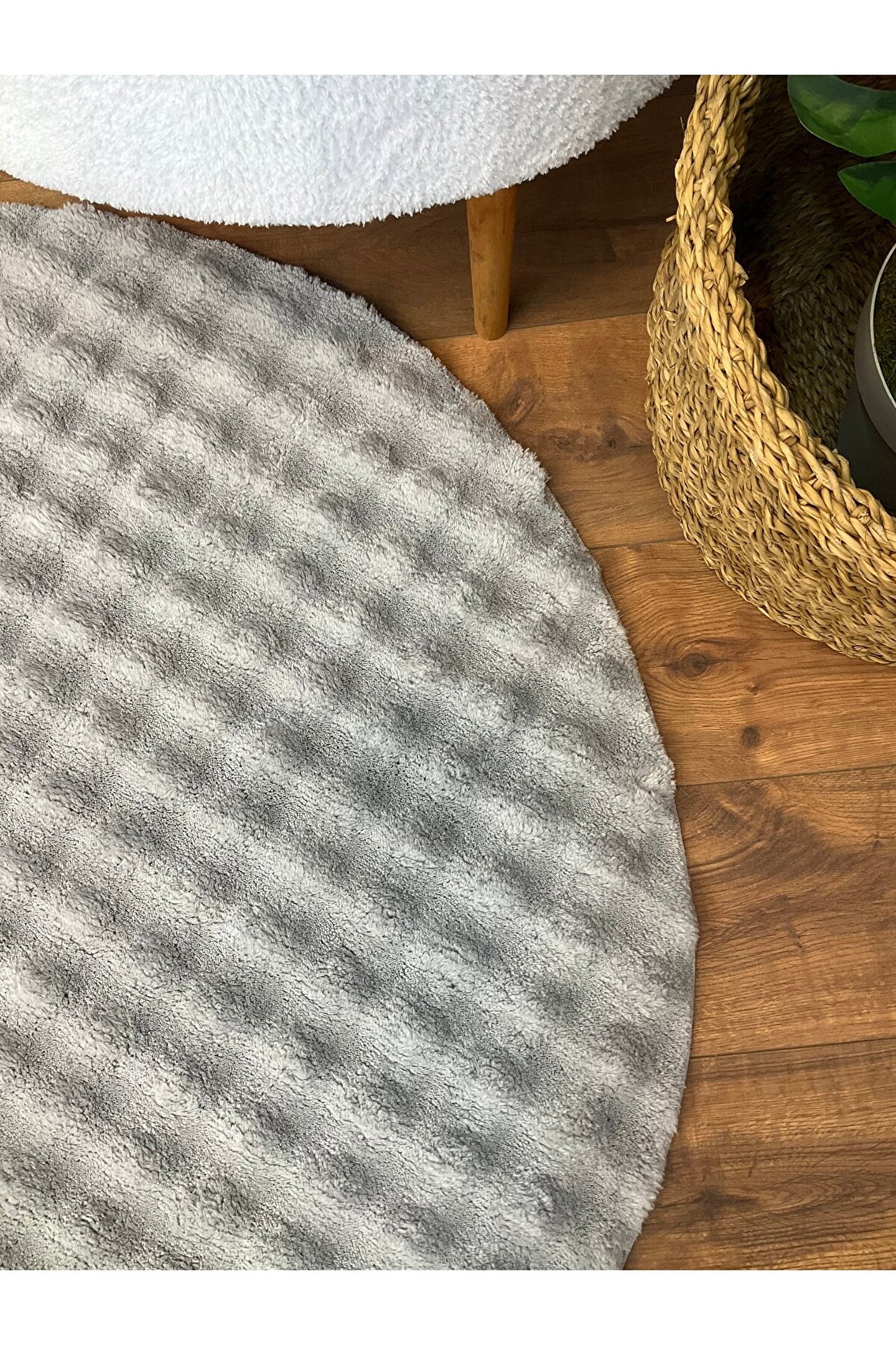 SARAZ HALI Bubble Tavşan Yuvarlak Post Yumuşacık Tavşan Tüyü Kaymaz Yıkanabilir Gri