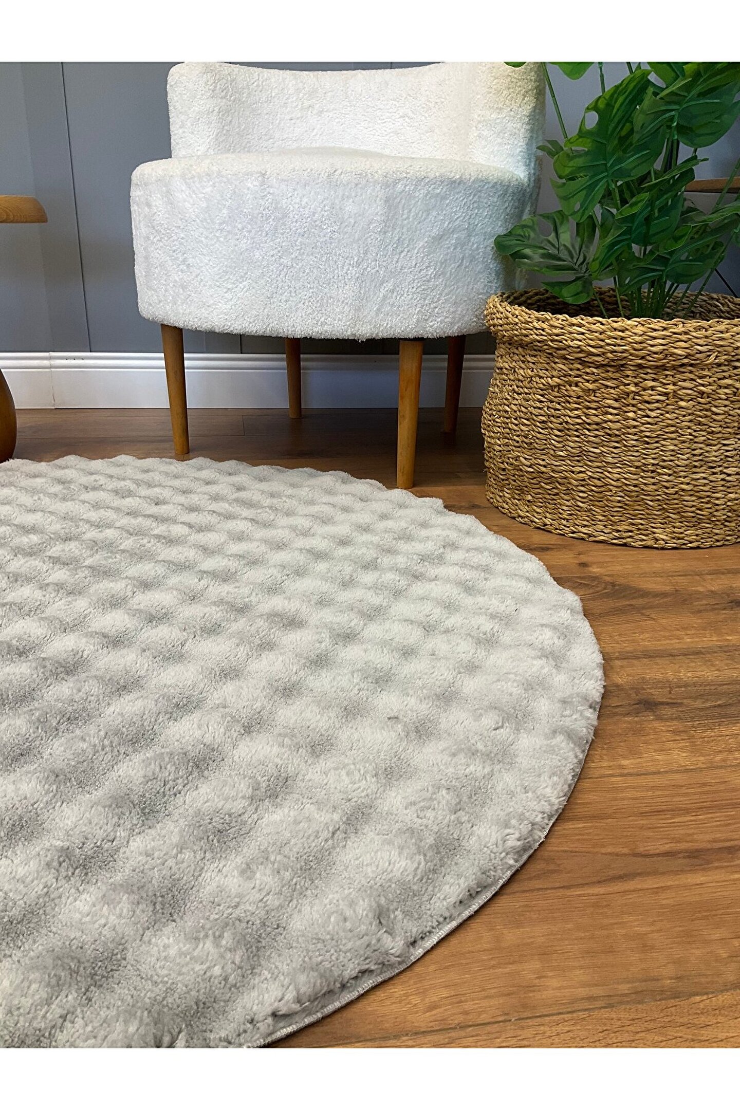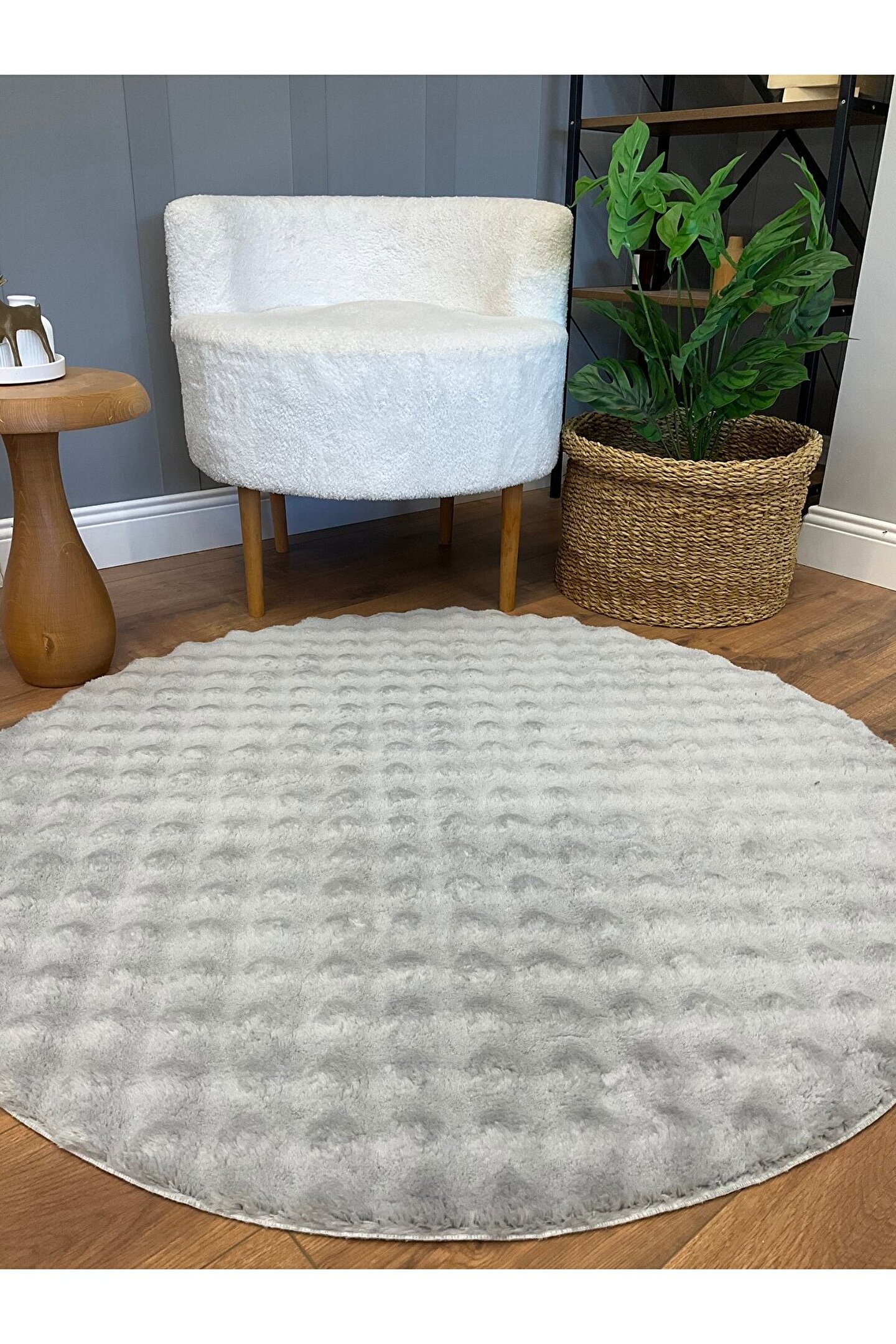 SARAZ HALI Bubble Tavşan Yuvarlak Post Yumuşacık Tavşan Tüyü Kaymaz Yıkanabilir Gri