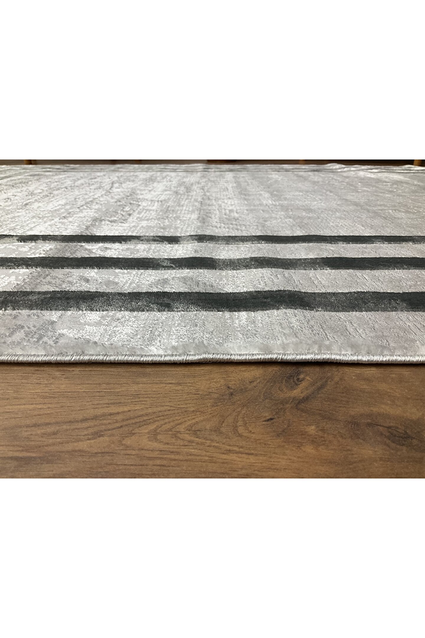 SARAZ HALI Çerçeve Model Bambu Yıkanabilir Parlak Halı Gri Çizgi