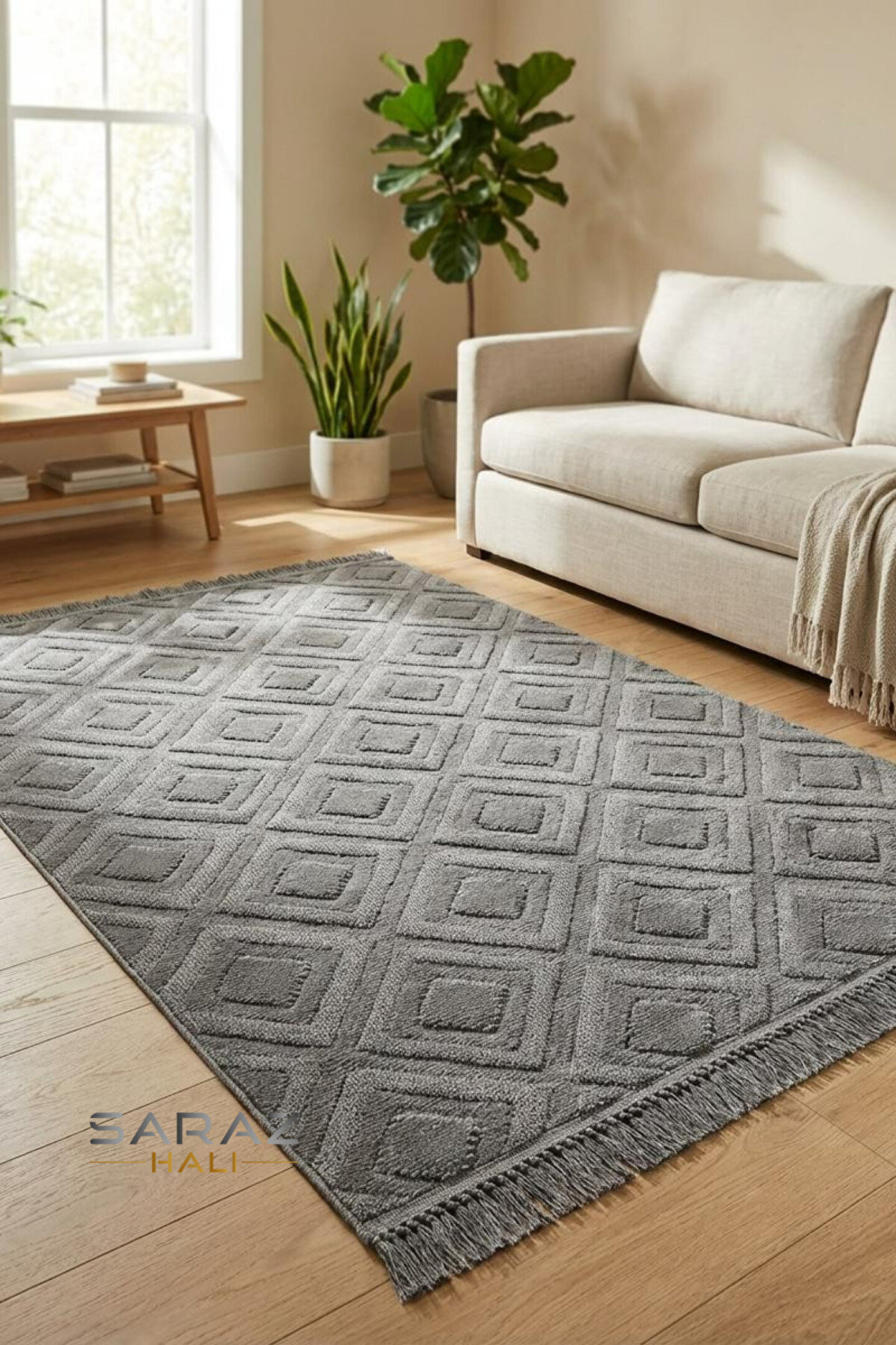 Bohem Desenli Yıkanabilir Makine Halısı – Microfiber & Şönil Dokuma | Kaymaz Taban | Saraz Halı Bohem tarzın sıcaklığını ve özgün desenlerini evinize taşıyın! Microfiber ve şönil iplik karışımıyla üretilen bu halı, yumuşak dokusu ve yüksek dayanıklılığıyla öne çıkar.; Makine halısı dokuma tipi sayesinde uzun ömürlü kullanım sunar.; 10 mm toplam kalınlık, 8 mm hav yüksekliği ve 1600 gr/m² ağırlığıyla konforlu bir zemin oluşturur.; Kaymaz tabanı ile zeminde sabit durur, leke tutmaz ve toz oluşturmaz.; Halı yıkama servislerinde yıkanabilir.; Kesme halı (özel ölçü) üretimiyle her mekâna özel boyutlarda hazırlanabilir.; Saçaklar ölçüye dahil değildir.; Kenar tipi overlok, saçak tipi örgü saçak olarak tasarlanmıştır.; 2 yıl garantilidir.; Kullanım alanları: salon, yatak odası, koridor, antre, mutfak.; Etnik motiflerden esinlenen bohem desenleriyle modern ve vintage tarzı bir araya getirir.; Yumuşak tuşeli, konforlu, leke tutmaz, hav yapmaz, kaymaz tabanlı ve uzun ömürlüdür.; Ürün Özellikleri: İplik Cinsi: Microfiber, Şönil | Halı Kalınlığı: 10 mm | Hav Yüksekliği: 8 mm | Ağırlık: 1600 gr/m² | Dokuma Tipi: Makine Halısı | Saçak Tipi: Örgü Saçak | Kenar Tipi: Overlok | Taban: Kaymaz | Garanti: 2 Yıl | Yıkanabilirlik: Halı yıkama servislerinde yıkanabilir | Ölçü Notu: Saçaklar ölçüye dahil değildir | Kullanım Alanı: Salon, Yatak Odası, Antre, Mutfak, Koridor.; SEO Bilgileri: Başlık: Bohem Desenli Yıkanabilir Halı – Microfiber & Şönil | Kaymaz Taban | Saraz Halı | Anahtar Kelimeler: bohem halı, yıkanabilir halı, kaymaz taban halı, microfiber halı, şönil halı, salon halısı, yatak odası halısı, modern halı, etnik desenli halı, vintage halı, makine dokuma halı, özel ölçü halı, saraz halı | Açıklama: Bohem desenli, microfiber ve şönil iplikten üretilmiş yıkanabilir makine halısı.; Kaymaz tabanı, leke tutmaz yapısı ve yumuşak dokusuyla salon, koridor, mutfak ve yatak odaları için ideal.; Saraz Halı kalitesiyle 2 yıl garantili!