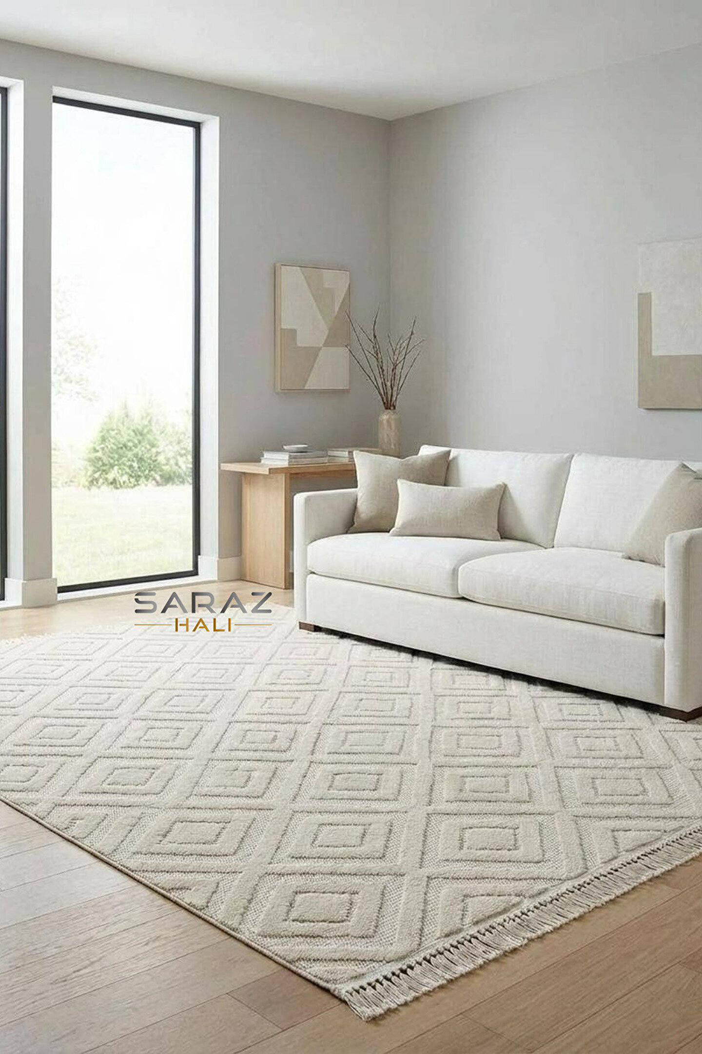 Bohem Desenli Yıkanabilir Makine Halısı – Microfiber & Şönil Dokuma | Kaymaz Taban | Saraz Halı Bohem tarzın sıcaklığını ve özgün desenlerini evinize taşıyın! Microfiber ve şönil iplik karışımıyla üretilen bu halı, yumuşak dokusu ve yüksek dayanıklılığıyla öne çıkar.; Makine halısı dokuma tipi sayesinde uzun ömürlü kullanım sunar.; 10 mm toplam kalınlık, 8 mm hav yüksekliği ve 1600 gr/m² ağırlığıyla konforlu bir zemin oluşturur.; Kaymaz tabanı ile zeminde sabit durur, leke tutmaz ve toz oluşturmaz.; Halı yıkama servislerinde yıkanabilir.; Kesme halı (özel ölçü) üretimiyle her mekâna özel boyutlarda hazırlanabilir.; Saçaklar ölçüye dahil değildir.; Kenar tipi overlok, saçak tipi örgü saçak olarak tasarlanmıştır.; 2 yıl garantilidir.; Kullanım alanları: salon, yatak odası, koridor, antre, mutfak.; Etnik motiflerden esinlenen bohem desenleriyle modern ve vintage tarzı bir araya getirir.; Yumuşak tuşeli, konforlu, leke tutmaz, hav yapmaz, kaymaz tabanlı ve uzun ömürlüdür.; Ürün Özellikleri: İplik Cinsi: Microfiber, Şönil | Halı Kalınlığı: 10 mm | Hav Yüksekliği: 8 mm | Ağırlık: 1600 gr/m² | Dokuma Tipi: Makine Halısı | Saçak Tipi: Örgü Saçak | Kenar Tipi: Overlok | Taban: Kaymaz | Garanti: 2 Yıl | Yıkanabilirlik: Halı yıkama servislerinde yıkanabilir | Ölçü Notu: Saçaklar ölçüye dahil değildir | Kullanım Alanı: Salon, Yatak Odası, Antre, Mutfak, Koridor.; SEO Bilgileri: Başlık: Bohem Desenli Yıkanabilir Halı – Microfiber & Şönil | Kaymaz Taban | Saraz Halı | Anahtar Kelimeler: bohem halı, yıkanabilir halı, kaymaz taban halı, microfiber halı, şönil halı, salon halısı, yatak odası halısı, modern halı, etnik desenli halı, vintage halı, makine dokuma halı, özel ölçü halı, saraz halı | Açıklama: Bohem desenli, microfiber ve şönil iplikten üretilmiş yıkanabilir makine halısı.; Kaymaz tabanı, leke tutmaz yapısı ve yumuşak dokusuyla salon, koridor, mutfak ve yatak odaları için ideal.; Saraz Halı kalitesiyle 2 yıl garantili!