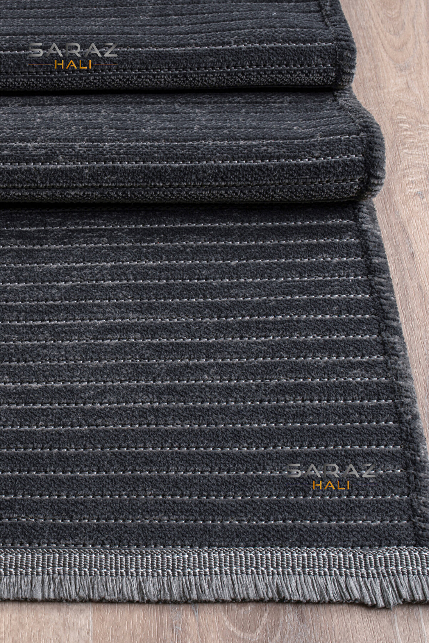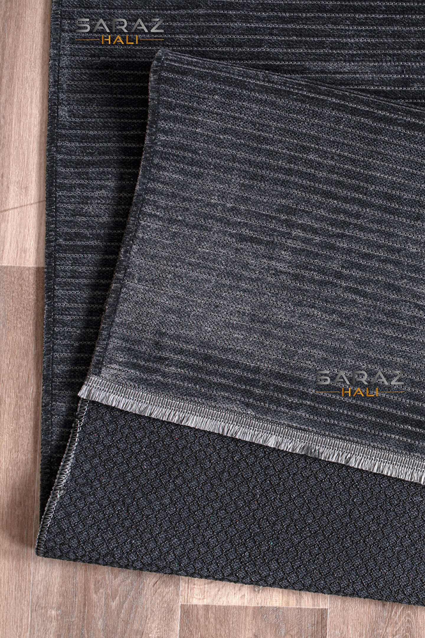 SARAZ HALI Dizayn Şönil Dokuma Kayma Yapmaz Makinede Yıkanabilir Leke Tutmaz Kesme Bohem Kilim Antrasit