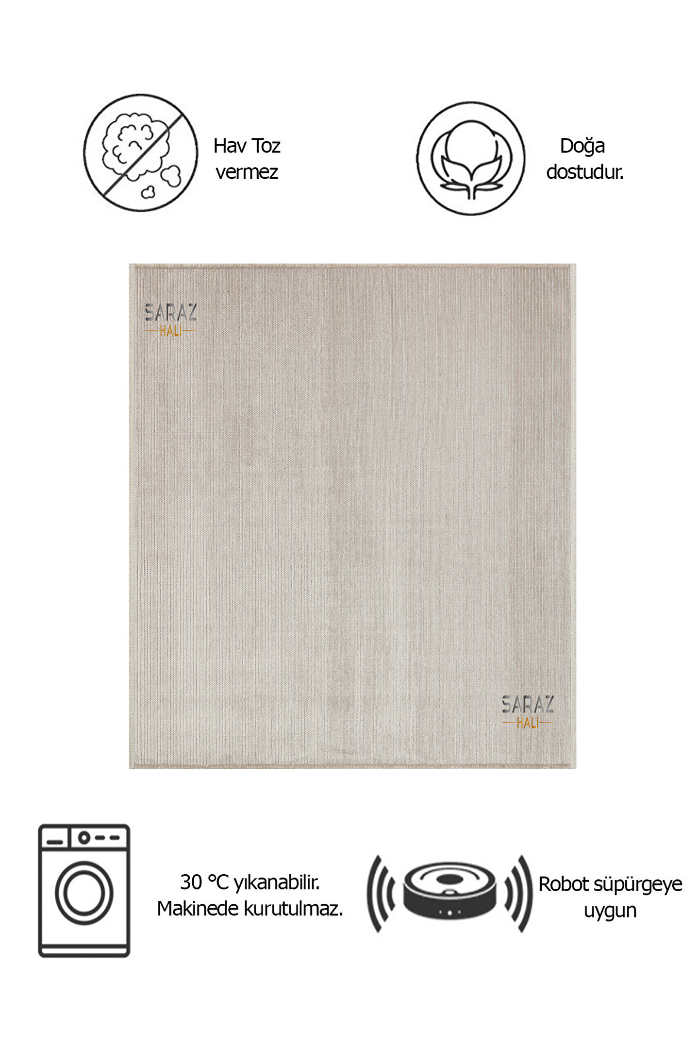SARAZ HALI Dizayn Şönil Dokuma Kayma Yapmaz Makinede Yıkanabilir Leke Tutmaz Kesme Bohem Kilim Vizon