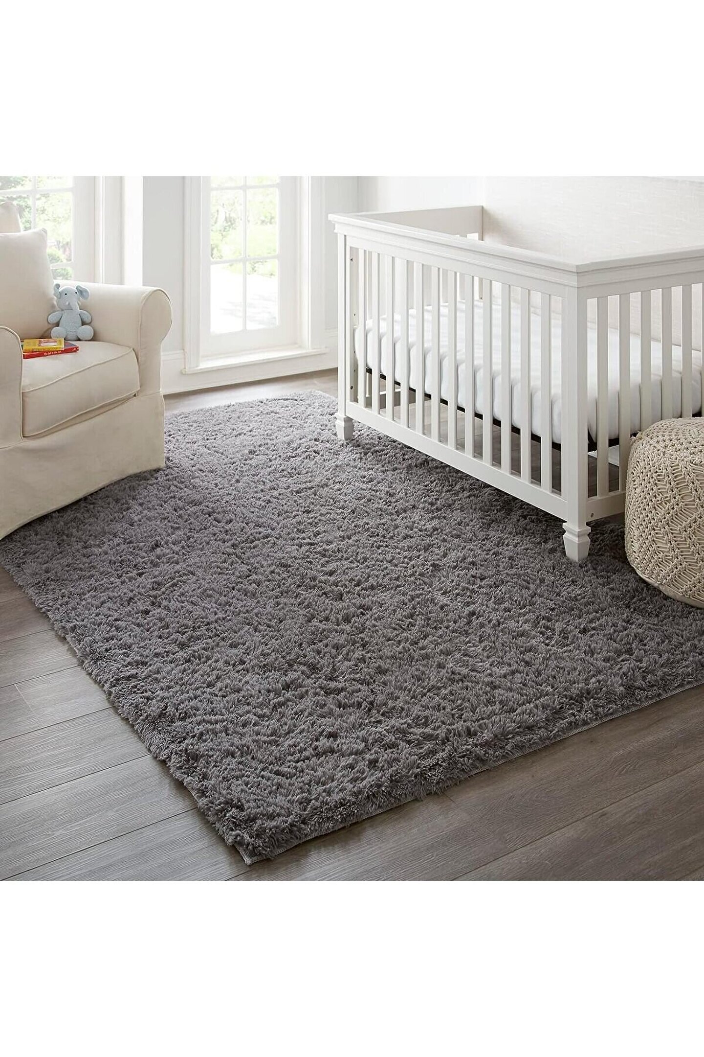 SARAZ HALI Gri Yıkanabilir Yolluk Kaymaz Taban Uzun Tüylü Yumuşak Halı Kaymaz Tüylenmez