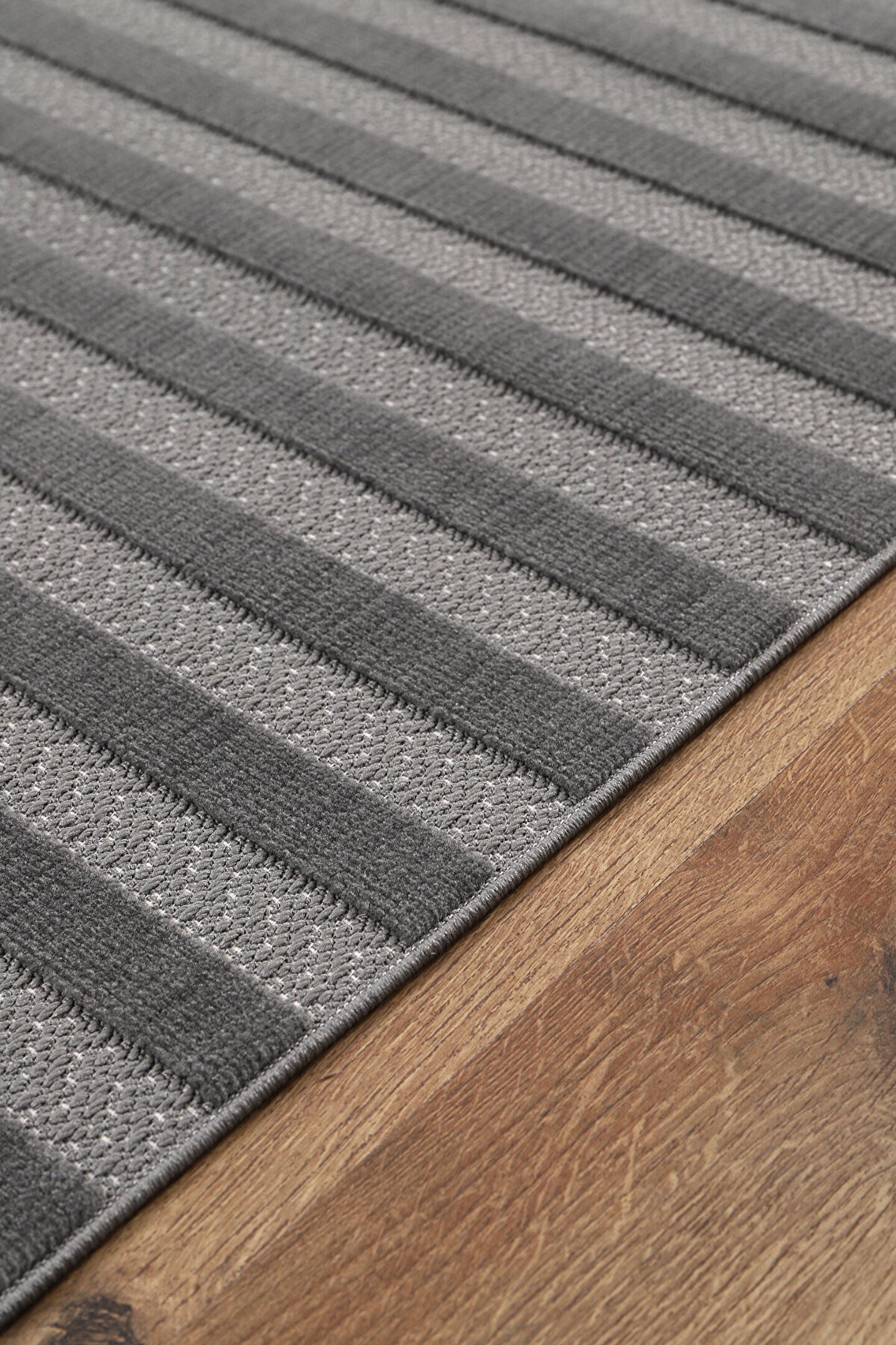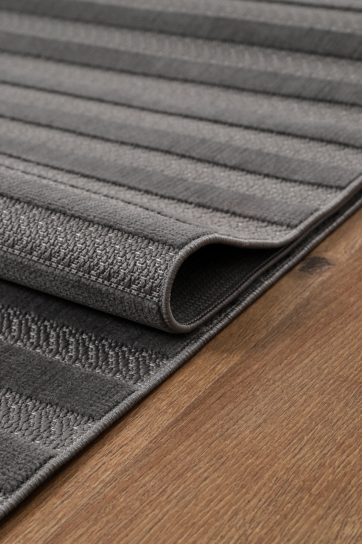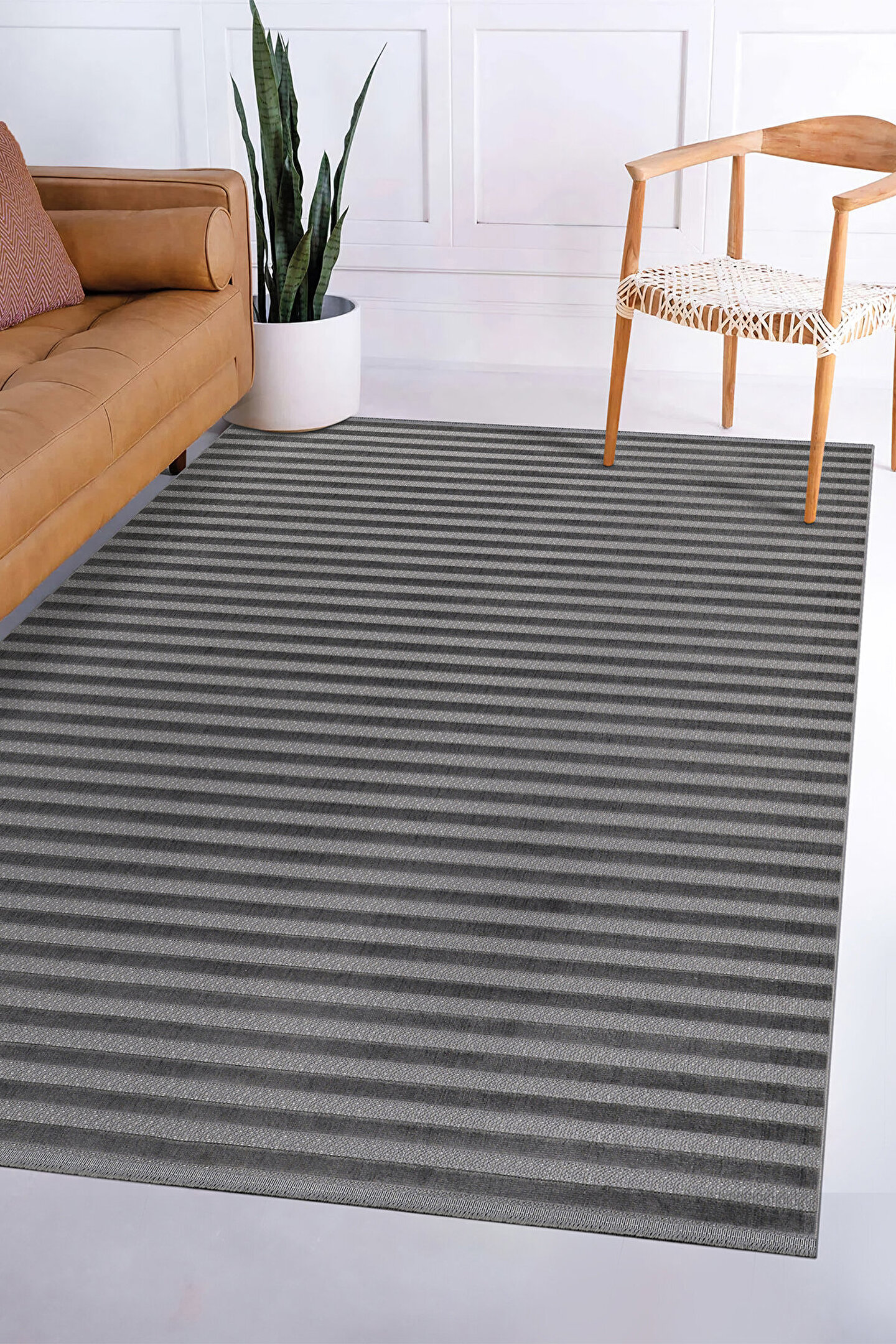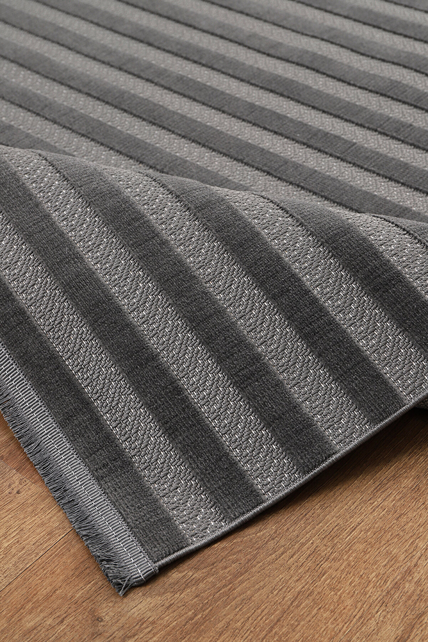 SARAZ HALI Kadife Bambu Dokuma Modern Kaymaz Salon Halısı Mutfak Halısı Koridor Halısı Yolluk Çizgi Antrasit
