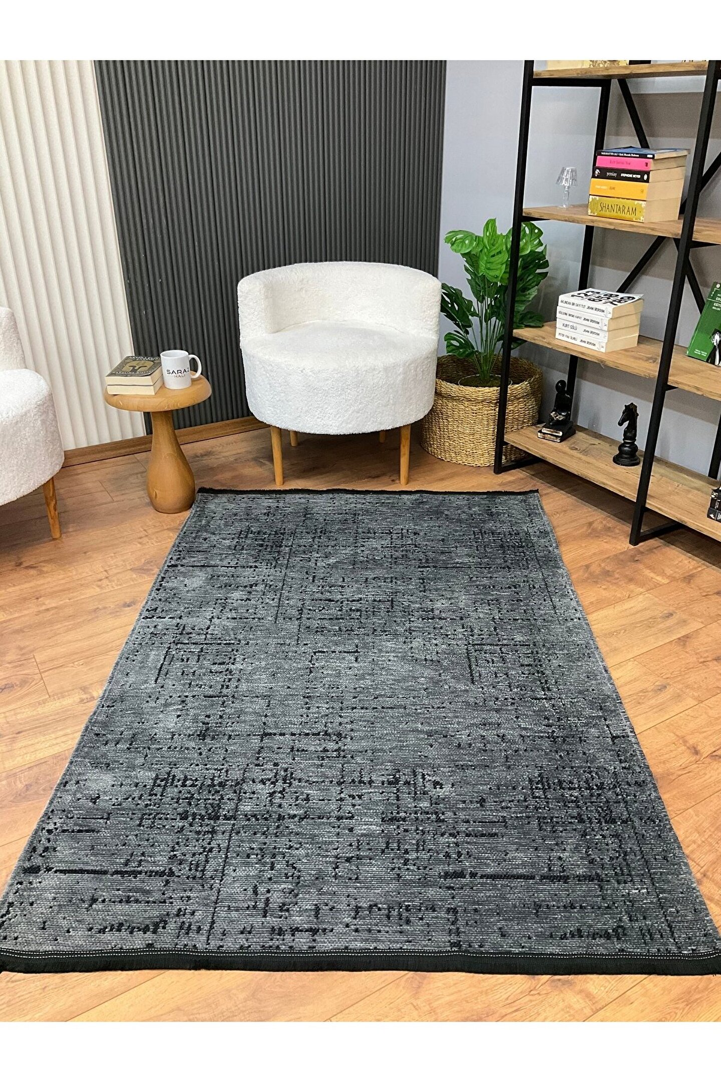 SARAZ HALI Şönil Dokuma Kayma Yapmaz Makinede Yıkanabilir Leke Tutmaz Kesme Bohem Kilim Antrasit 2